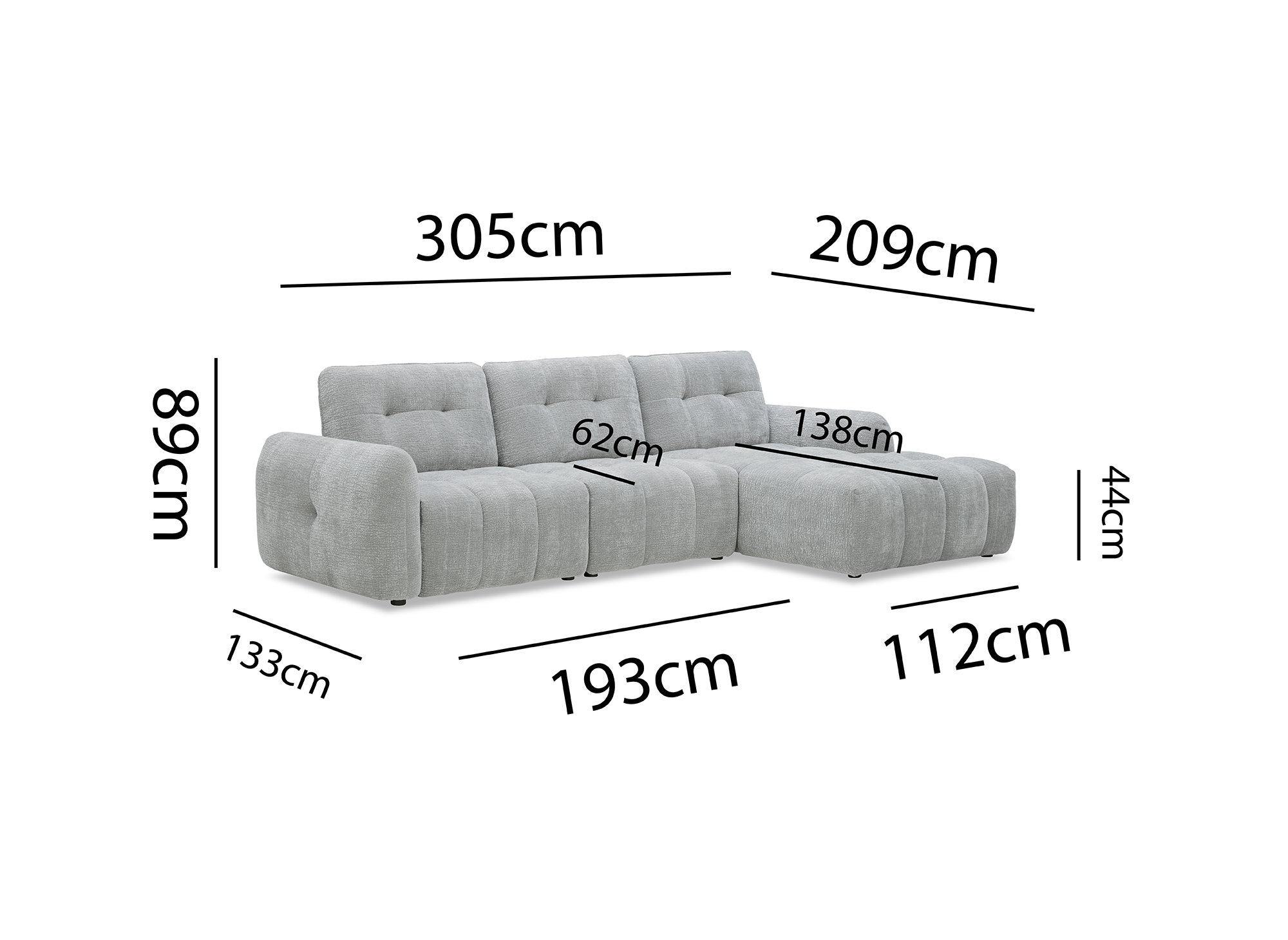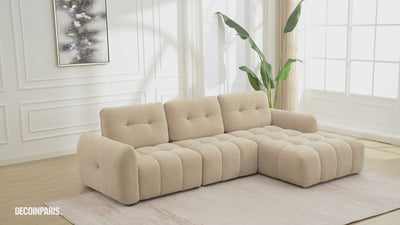Canapé d'angle en velours tissé gris clair avec dossier réglable ADONIS - Angle droit Prix de vente1.349,00 € Prix normal1.699,00 € - 21%