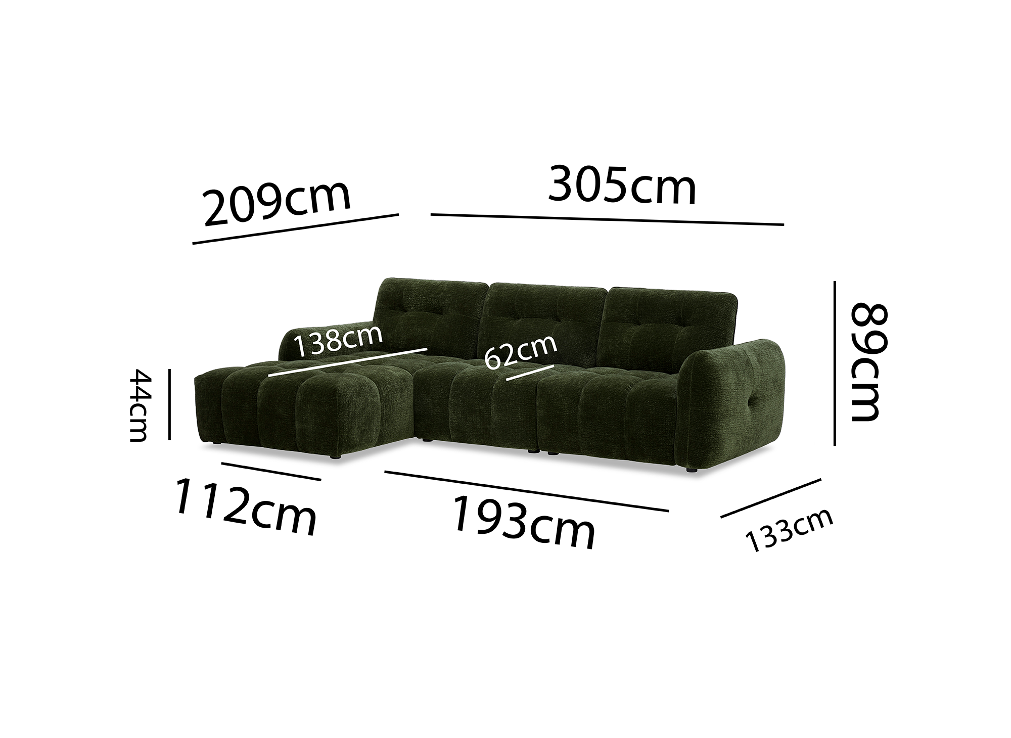 Canapé d'angle en velours tissé vert olive avec dossier réglable ADONIS - Angle gauche Prix de vente1.349,00 € Prix normal1.699,00 € - 21%