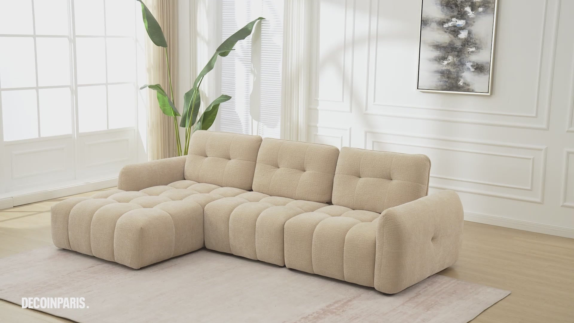 Canapé d'angle en velours tissé vert olive avec dossier réglable ADONIS - Angle gauche - DécoInParis
