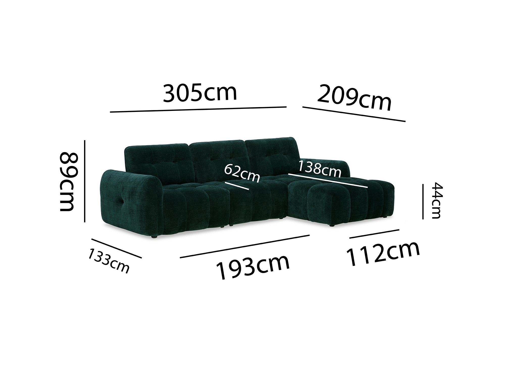 Canapé d'angle en velours tissé vert sapin avec dossier réglable ADONIS - Angle droit Prix de vente1.349,00 € Prix normal1.699,00 € - 21%