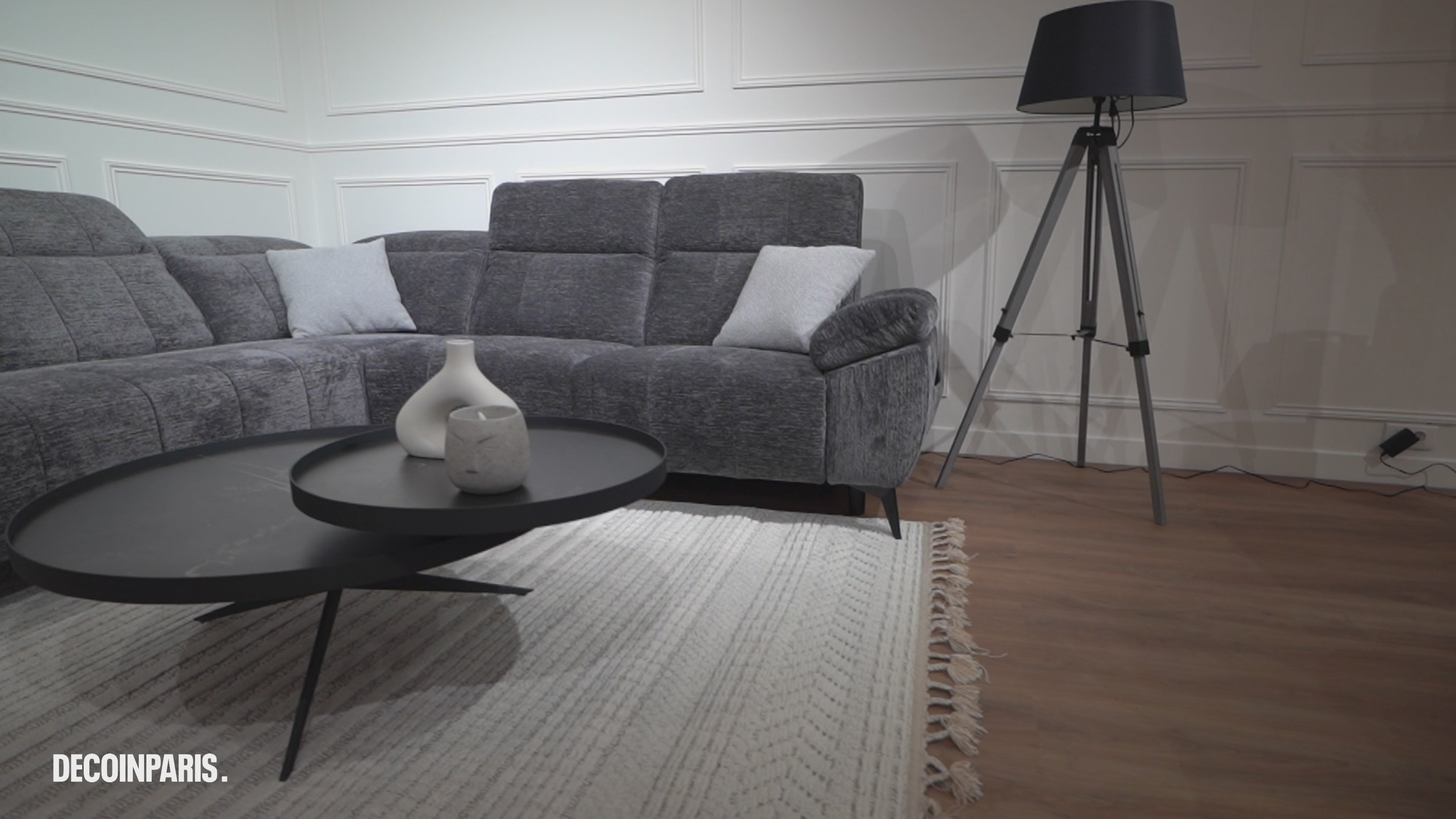 Avec son allure moderne et son confort haut de gamme, le canapé d’angle relax électrique SOLINA en velours chiné gris est une invitation à la détente. Parfait pour les salons spacieux, il allie esthétique raffinée et fonctionnalités bien pensées pour un usage quotidien.