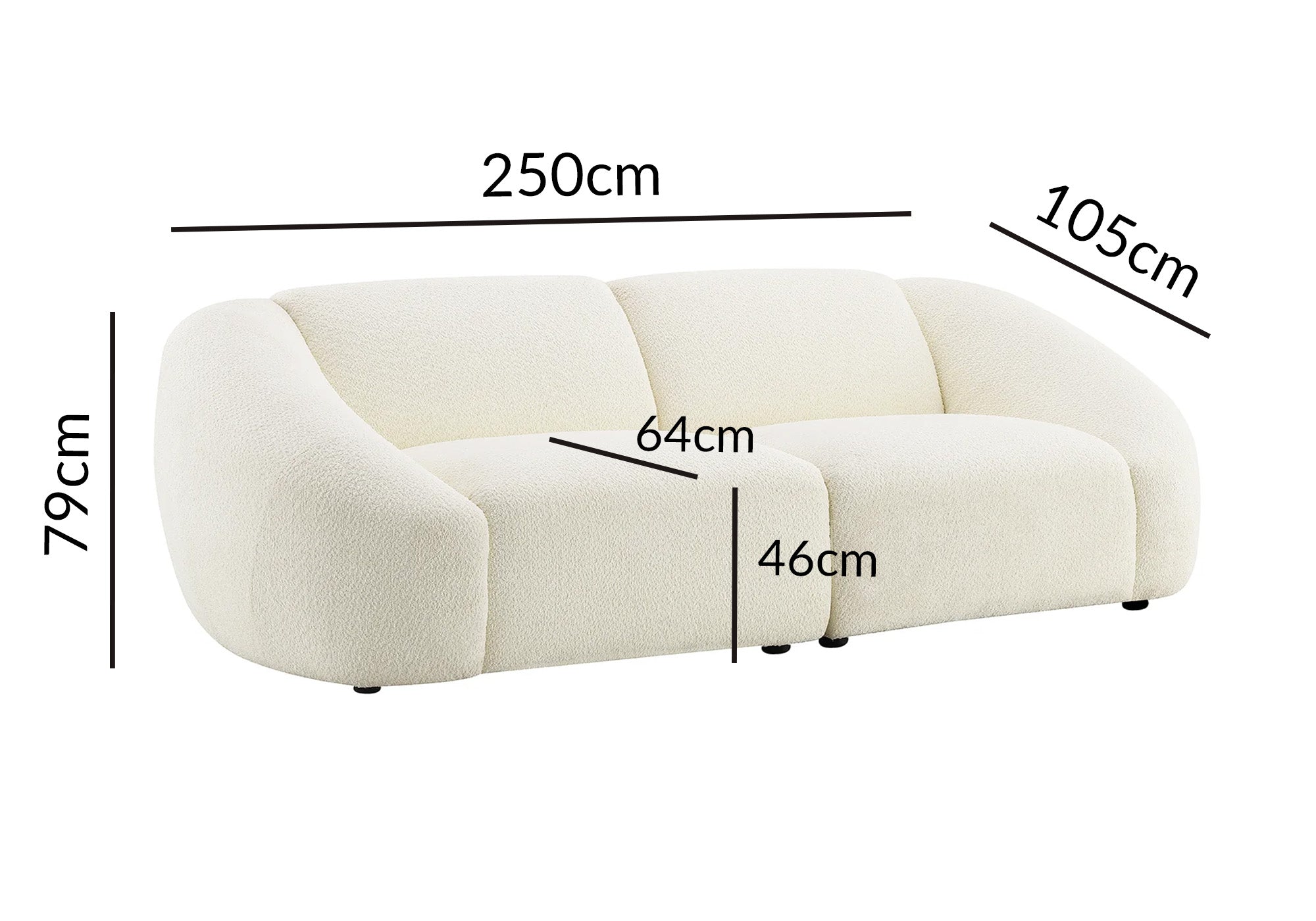 Parfait pour créer une atmosphère cosy et élégante, le canapé en bouclette NYLA allie esthétique et praticité, et reste facile à associer avec d’autres meubles et accessoires de décoration.