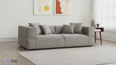 Une alliance entre confort et design, le canapé 3 places en tissu taupe EVELYNE est parfait pour votre salon !