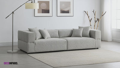 Une alliance entre confort et design, le canapé 4 places effet de mouton gris EVELYNE est parfait pour votre salon !