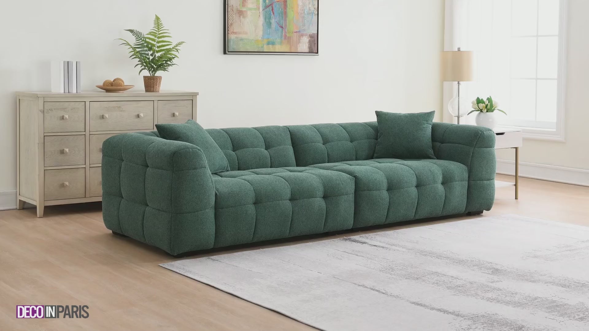 Notre canapé design 4 place en tissu vert BELLA deviendra la pièce maîtresse de votre salon. Son design moderne et épuré apportera une touche d'élégance à votre décoration intérieure. Avec ses courbes bombées et ses finitions soignées, ce canapé 3 places s'intègrera parfaitement à tous les styles d'intérieur en passant du plus classique au plus moderne.
