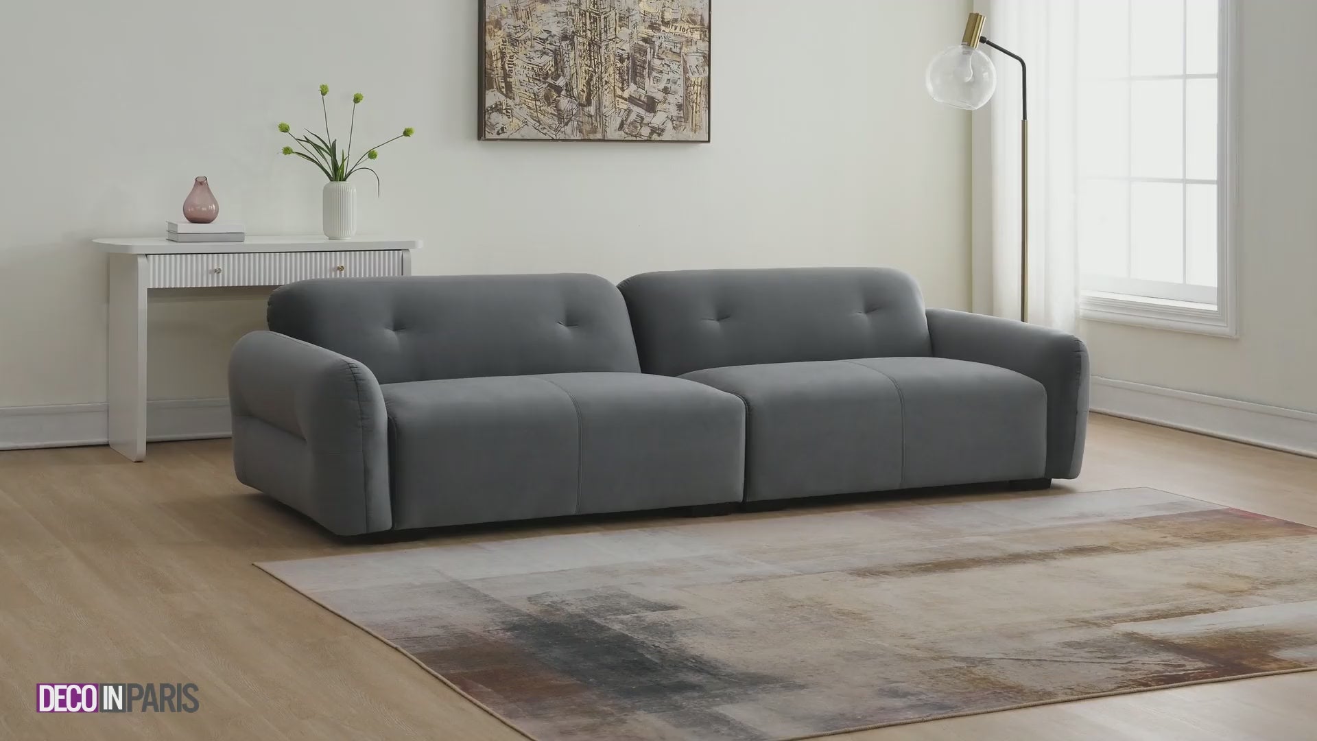 Faites de votre espace de vie un lieu de détente stylé avec notre canapé 4 places en velours gris PICASSO !