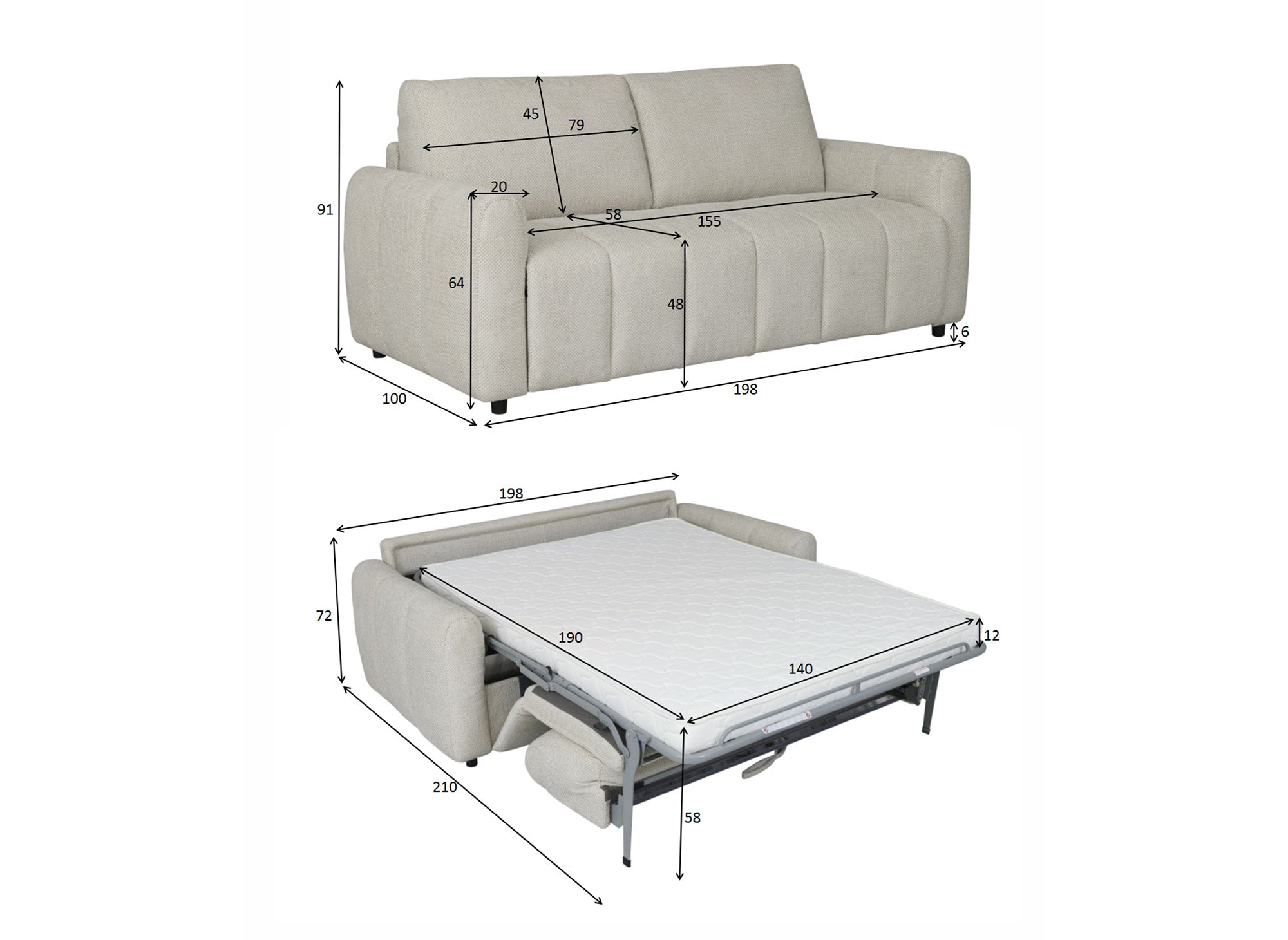 Doté d’un système d’ouverture express « rapido », ISANDRO se transforme en lit en quelques secondes, sans avoir à enlever les coussins d’assise ou de dossier. Le matelas de 12 cm d’épaisseur, garantit un confort de couchage optimal, aussi bien pour un usage quotidien que ponctuel.