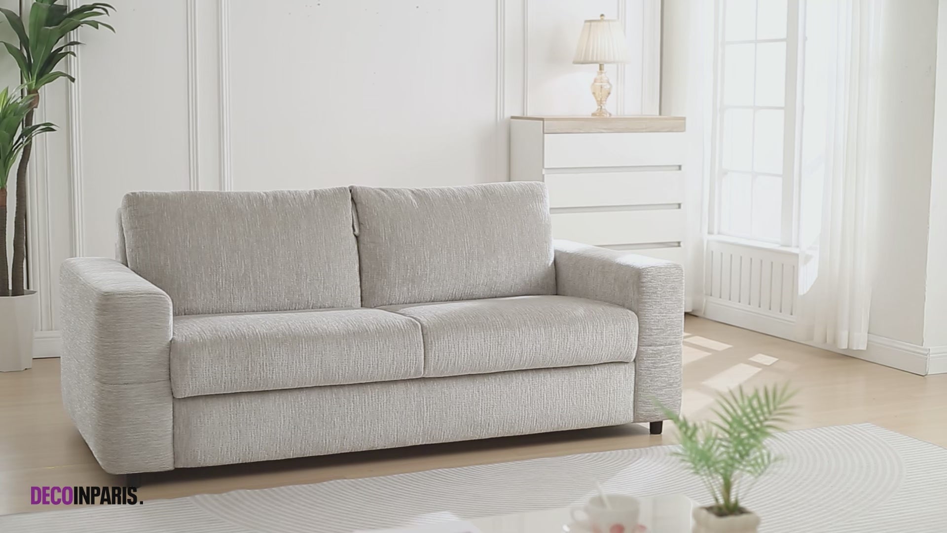 Grâce à son système d’ouverture express « rapido », AMAURY se transforme en lit en un clin d’œil, sans effort et sans retirer les coussins. Le matelas intégré de 12 cm d’épaisseur, assure un couchage confortable pour un usage quotidien ou occasionnel.