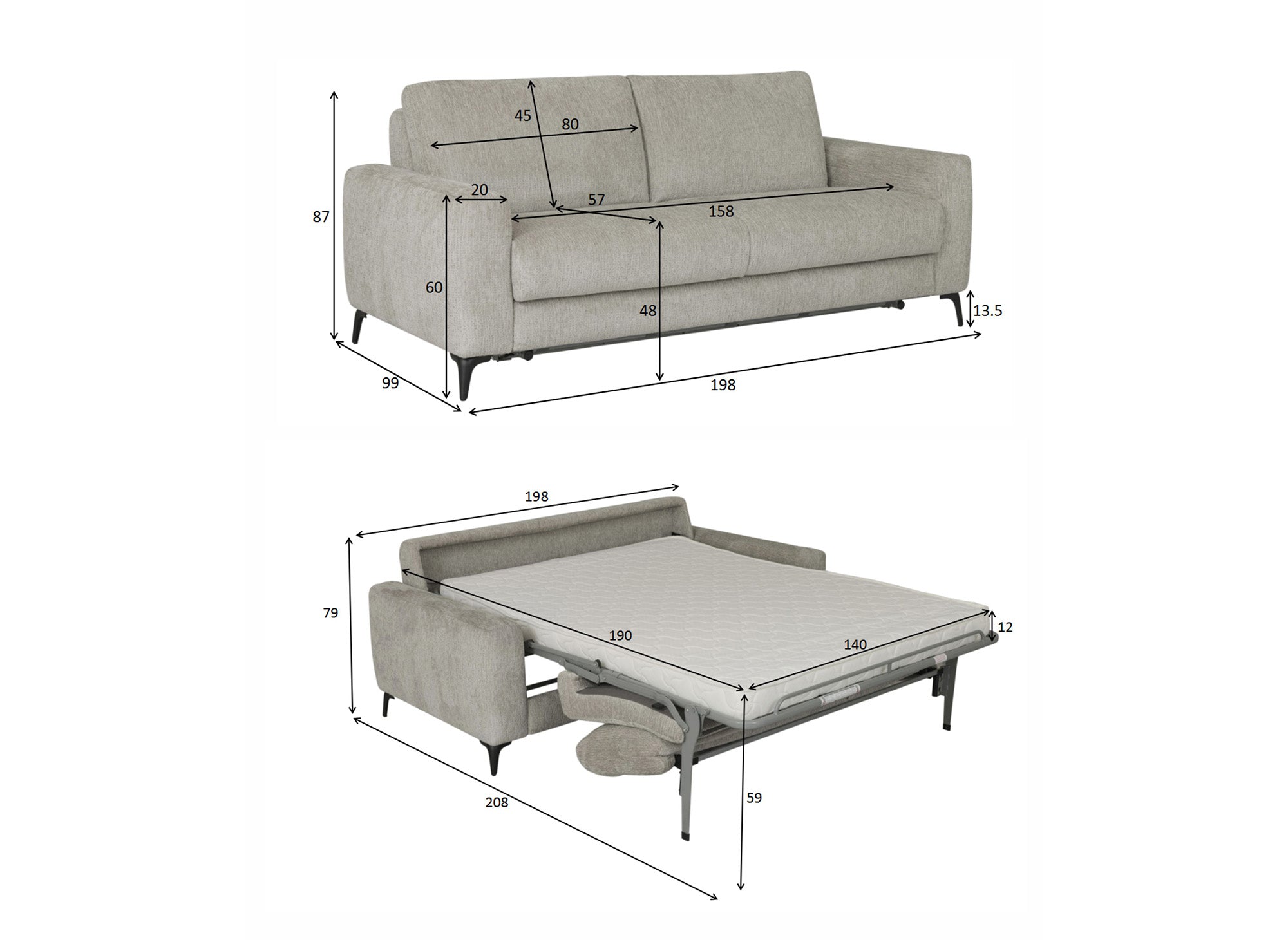 Grâce à son système d’ouverture express « rapido », transformez votre salon en espace nuit en quelques secondes. Le mécanisme permet une ouverture simple et rapide, sans retirer les coussins d’assise ou de dossier. Le matelas de 12 cm d’épaisseur assure un confort optimal pour un couchage 2 ou ponctuel.