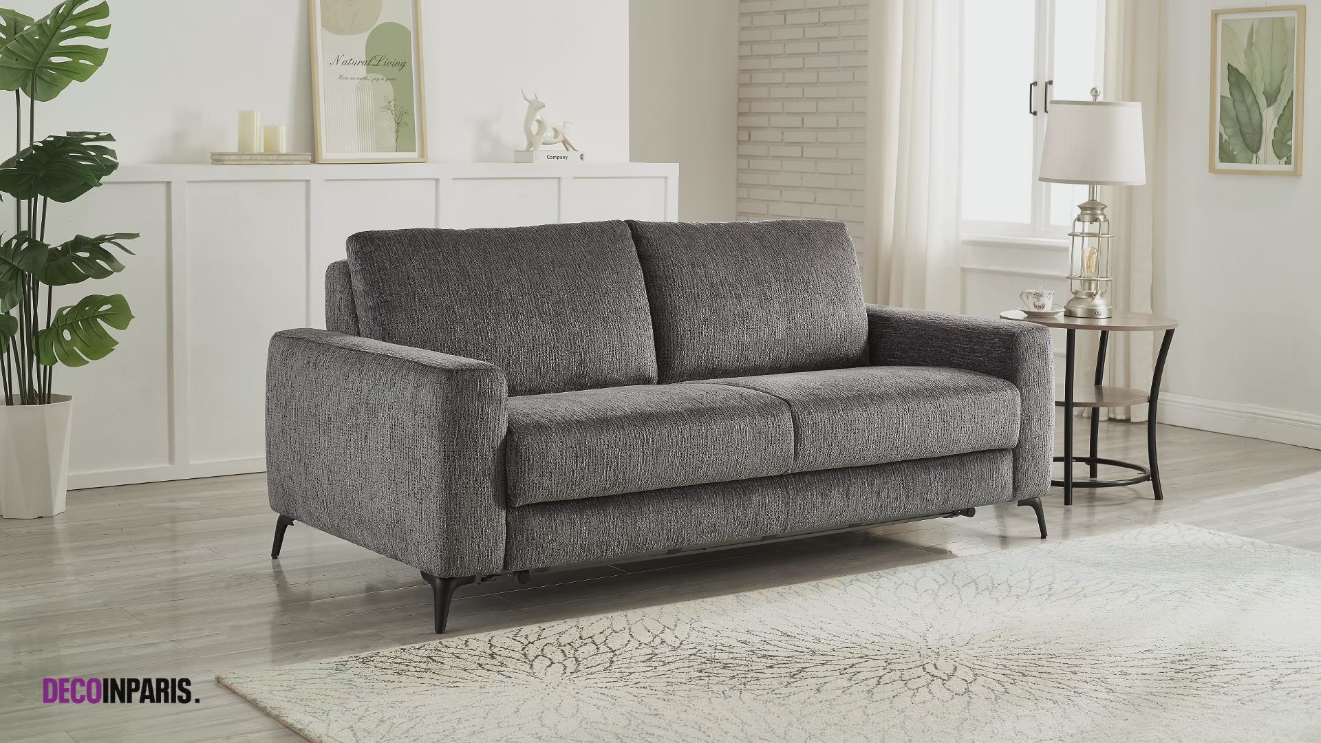 Canapé convertible 3 places en velours chiné gris foncé NONA