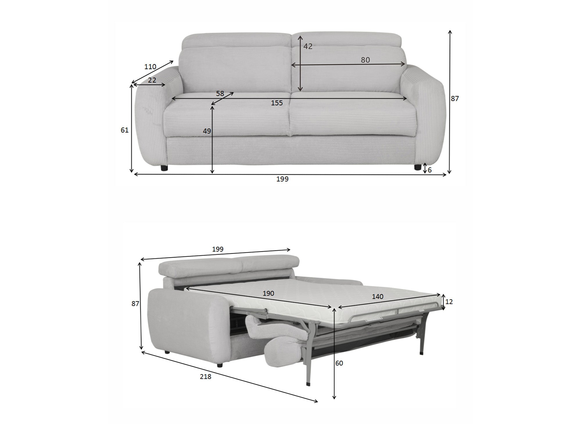 Son revêtement en velours côtelé beige doux et chaleureux apporte une sensation cocooning tout en s’intégrant parfaitement dans une déco contemporaine ou plus classique. Les tétières relevables offrent un maintien optimal pour la tête et la nuque, que ce soit pour lire, regarder la télévision ou simplement se détendre.