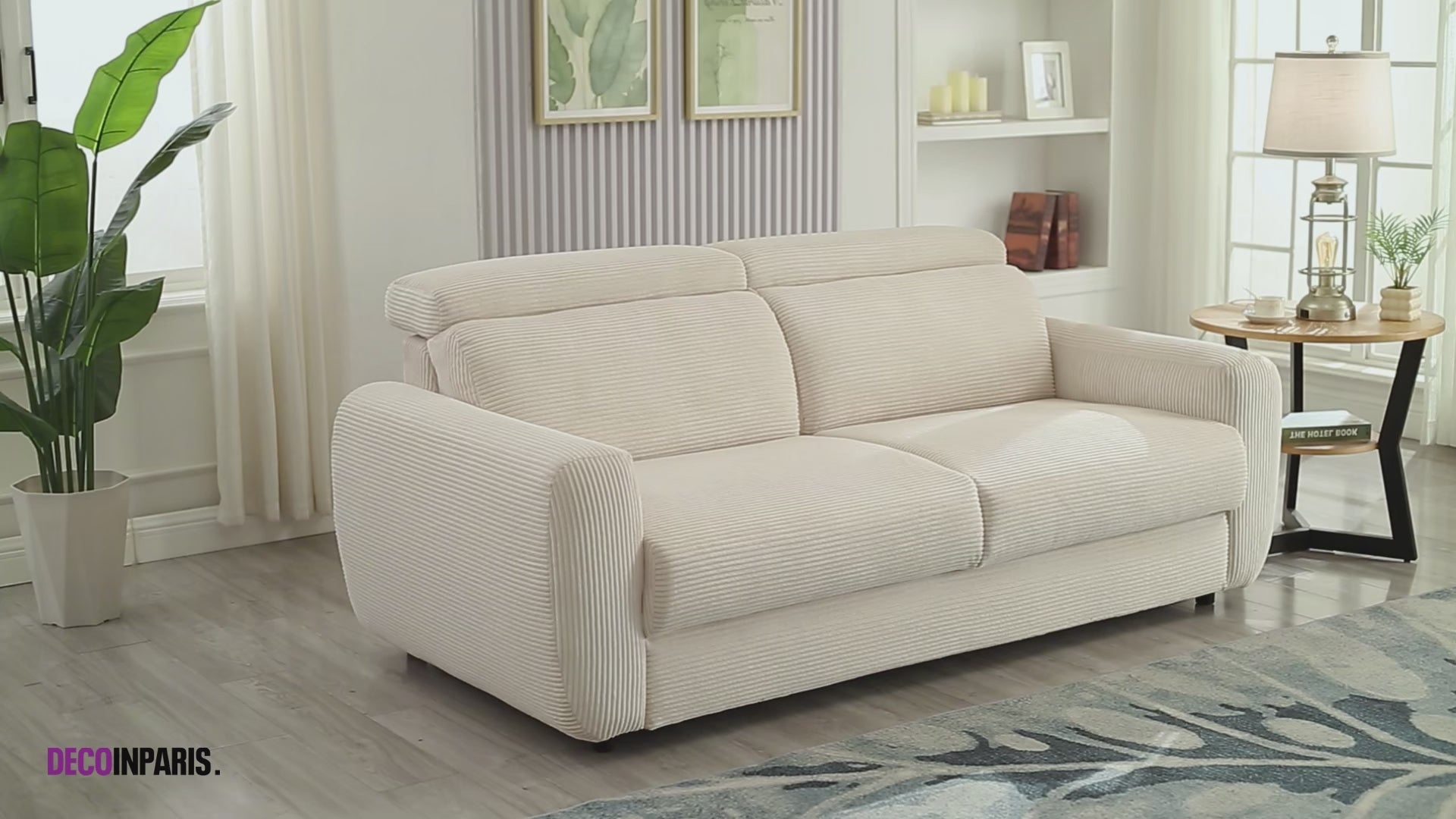 Canapé convertible 3 places en velours côtelé beige TOGO