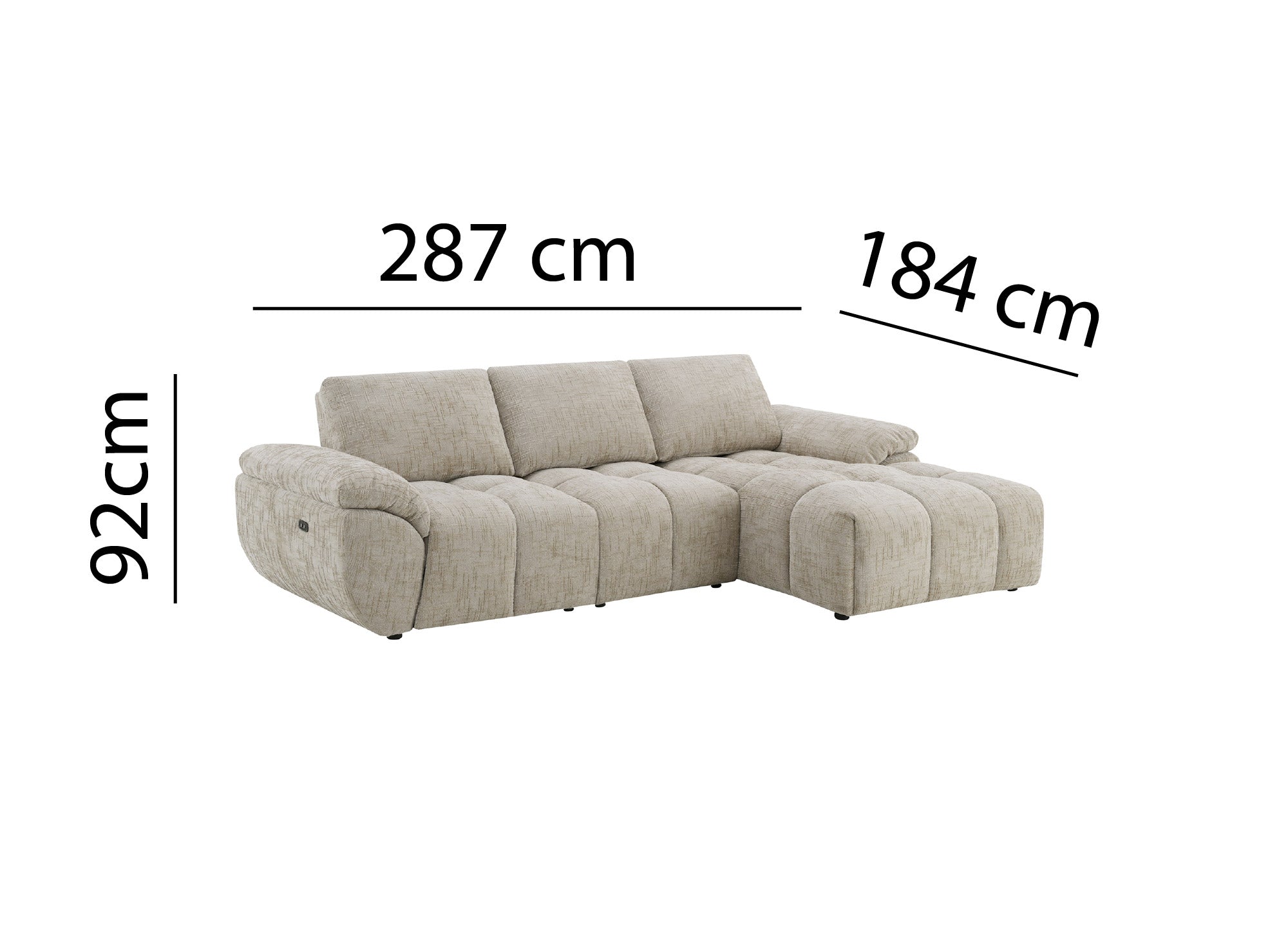 Canapé d’angle relax électrique en velours chiné taupe ALPES - Angle droit