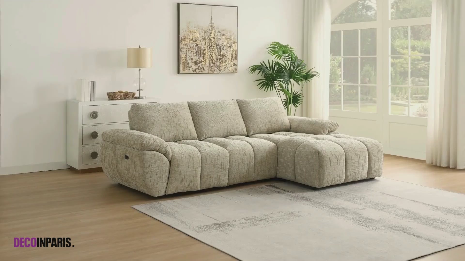 Le canapé d’angle relax électrique en velours chiné taupe ALPES allie avec élégance confort et design contemporain. Grâce à son assise généreuse, ses formes arrondies et son revêtement en velours chiné texturé, il apporte une touche chaleureuse, moderne et raffinée à votre salon.