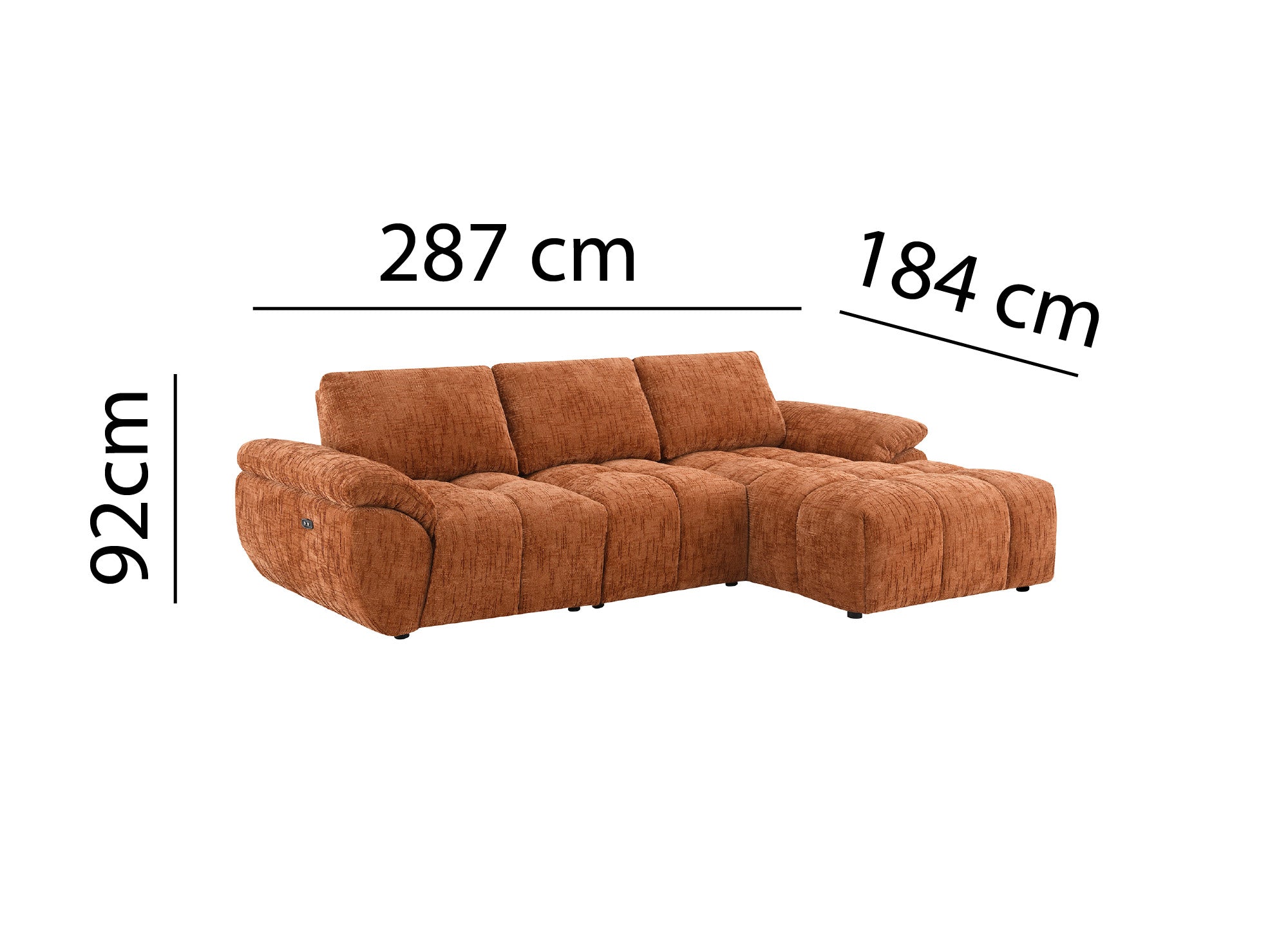 Canapé d’angle relax électrique en velours chiné terracotta ALPES - Angle droit