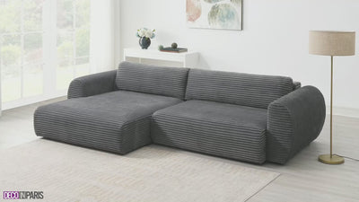 Découvrez le canapé d'angle convertible avec coffre 3 places en velours côtelé épais gris TILDA, une pièce maîtresse qui marie élégance et fonctionnalité pour sublimer votre intérieur.