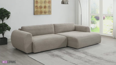 Découvrez le canapé d'angle convertible avec coffre 3 places en velours côtelé épais taupe TILDA, une pièce maîtresse qui marie élégance et fonctionnalité pour sublimer votre intérieur.