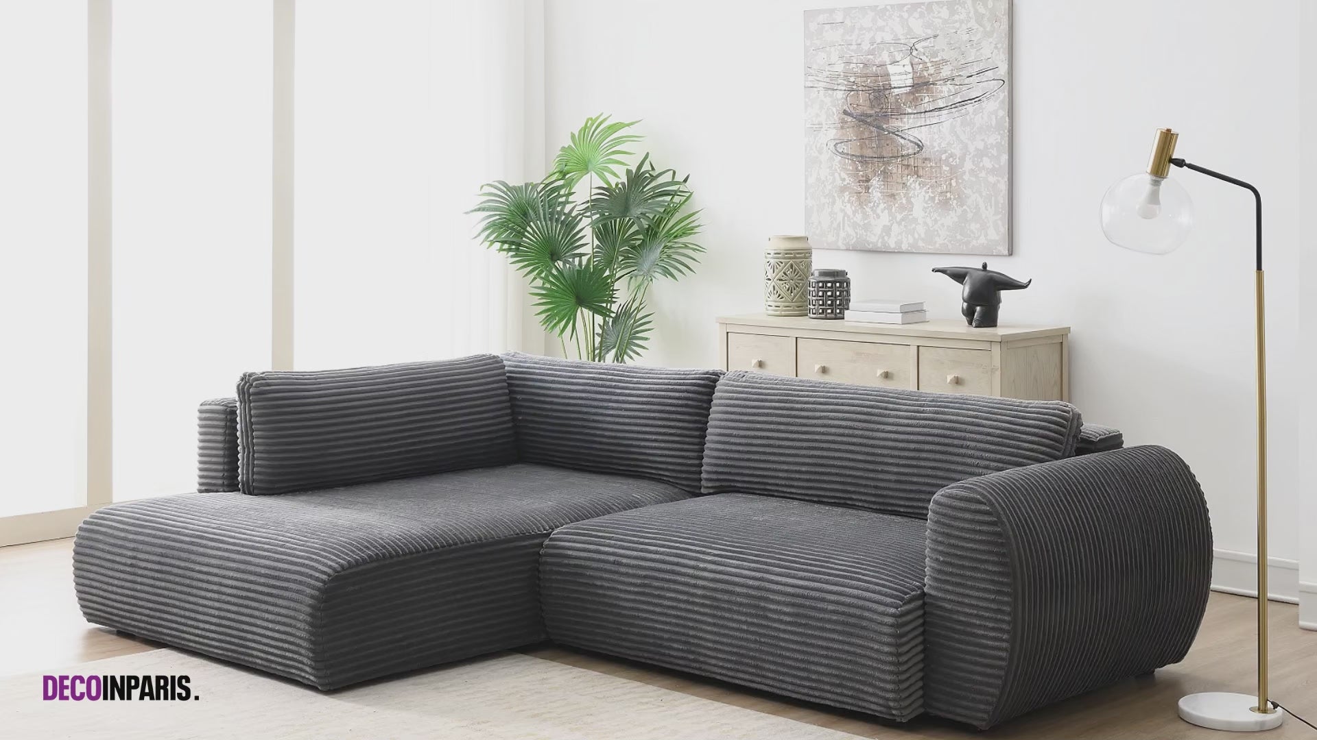 Vous souhaitez insuffler à votre intérieur une ambiance à la fois cosy et raffinée ? Laissez vous séduire par le canapé d'angle convertible avec méridienne en velours côtelé épais gris TILDA.