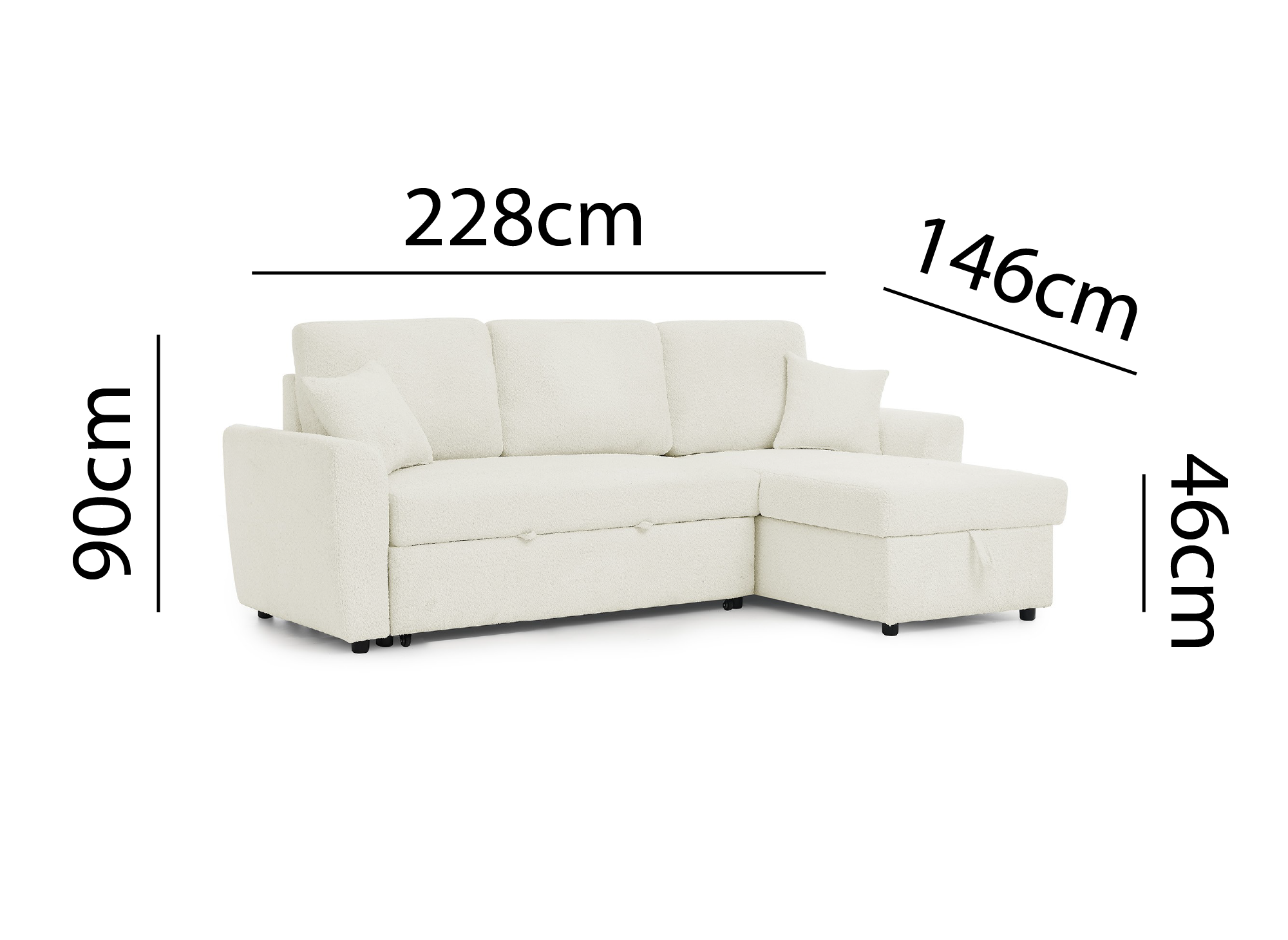 Canapé d'angle convertible et réversible avec coffre en tissu bouclette beige ADRYEN