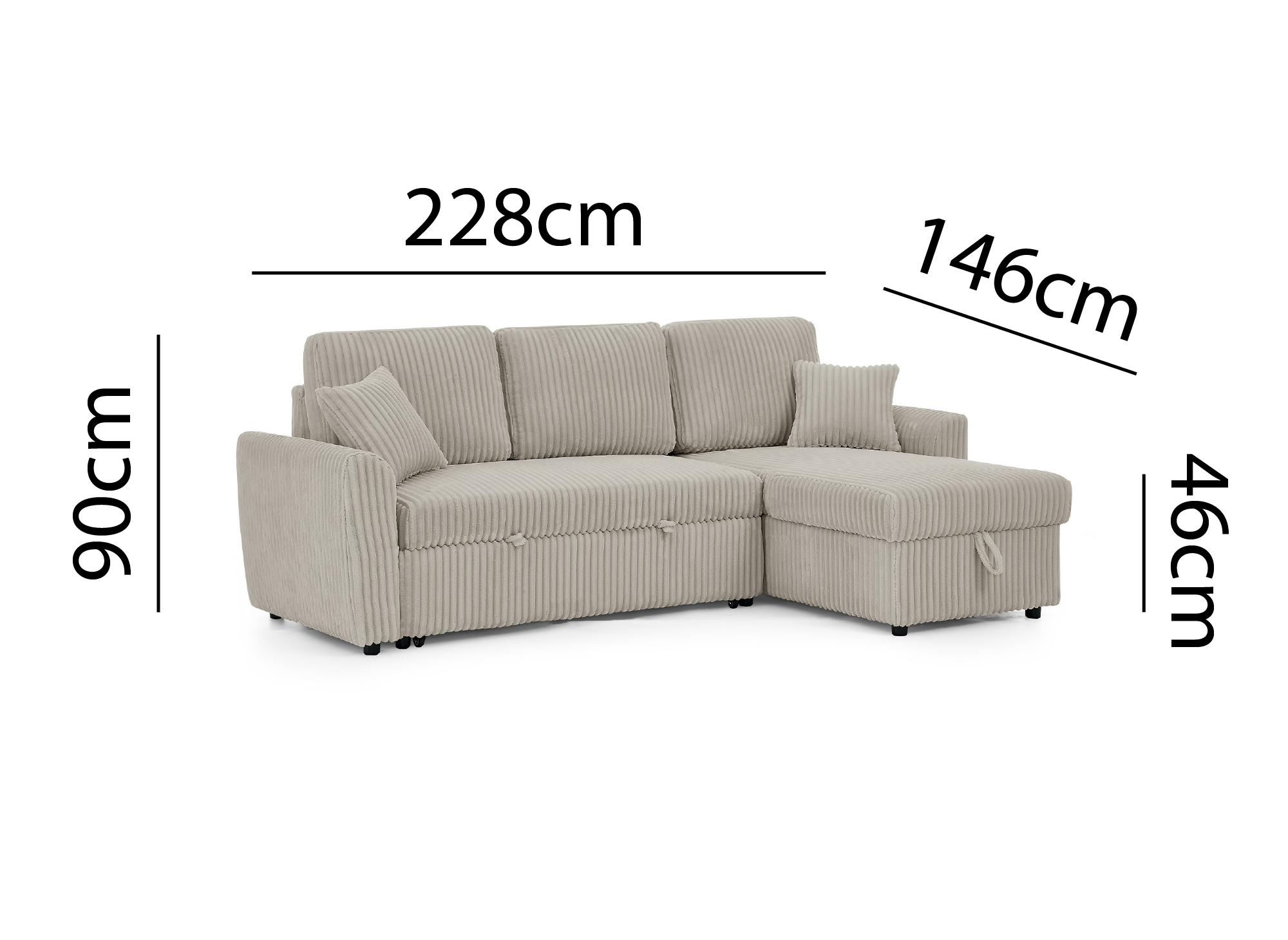 Canapé d'angle convertible et réversible avec coffre en velours côtelé épais taupe ADRYEN