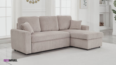 Ce canapé convertible et réversible s’adapte à toutes vos envies, offrant confort, praticité et style.