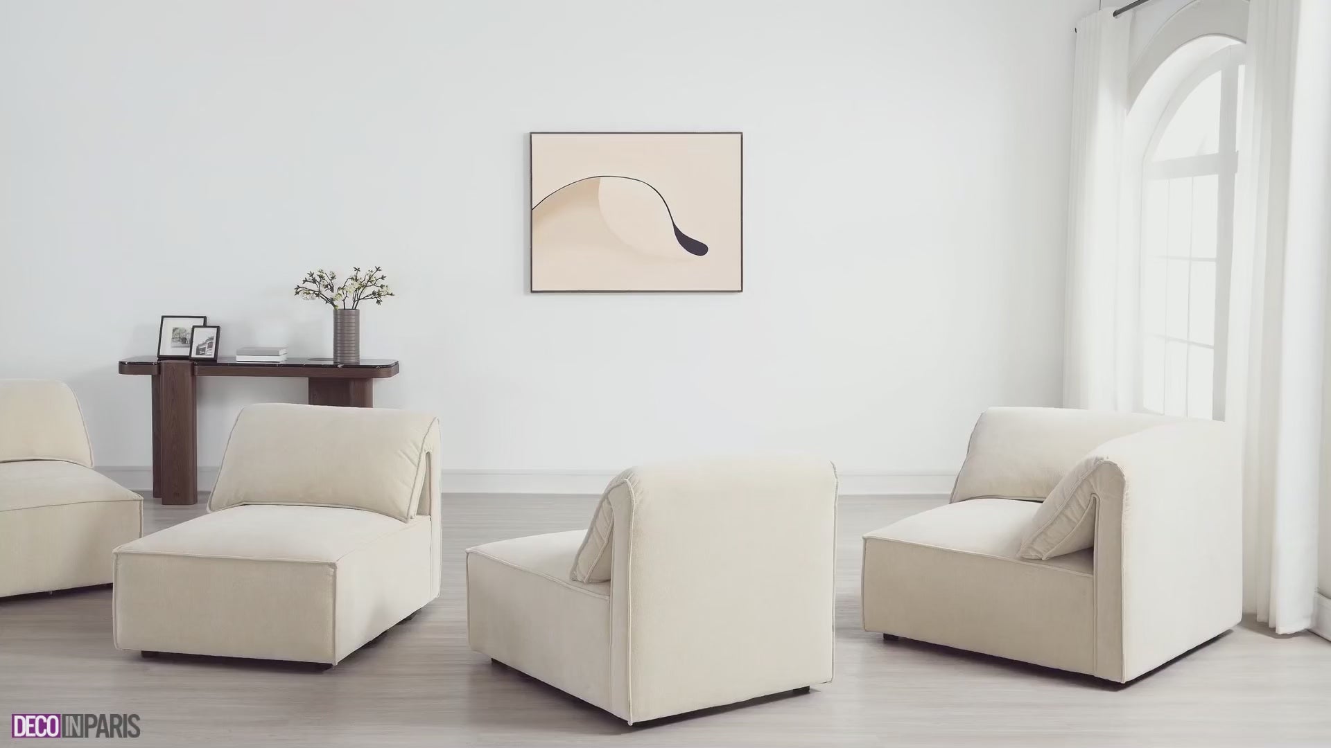 Chaque détail du canapé d'angle modulable a été pensé pour offrir une expérience de détente. Les accoudoirs légèrement arrondis et la profondeur généreuse de l'assise vous invitent à vous installer confortablement et à profiter de moments de convivialité. Que ce soit pour recevoir des amis, profiter d'une soirée cinéma en famille ou tout simplement vous reposer après une longue journée, ce canapé répondra à toutes vos attentes.