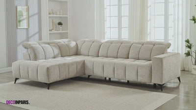 Canapé d'angle relax électrique en velours chiné beige ALVAR - Angle gauche