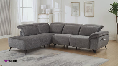 Canapé d'angle relax électrique en velours chiné gris SOLINA - Angle gauche