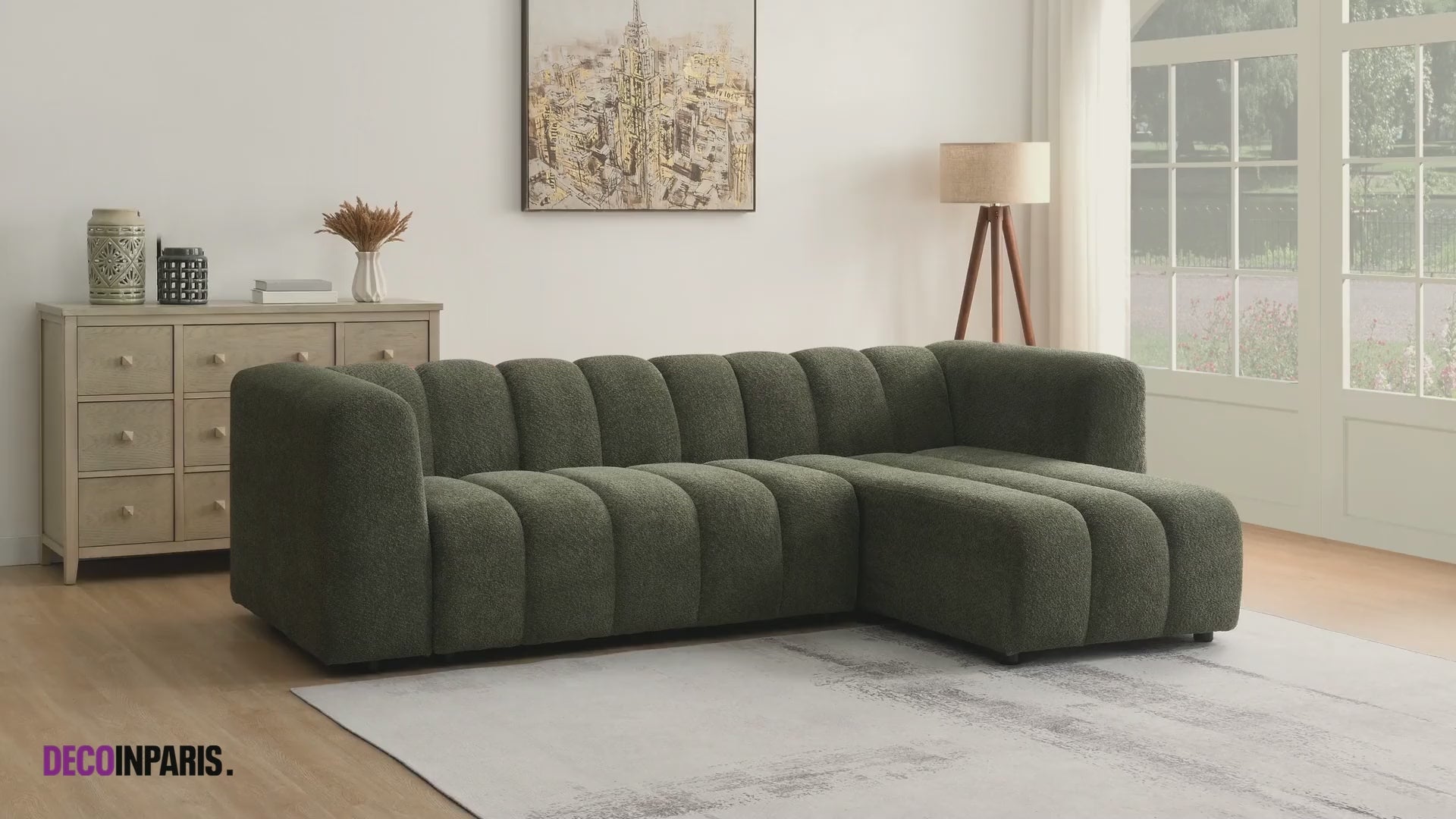Transformez votre espace de vie avec le canapé d'angle réversible en tissu bouclette vert AELIS, un canapé design à la fois élégant, fonctionnel et ultra confortable. Idéal pour les salons contemporains, scandinaves ou minimalistes, ce canapé d’angle réversible en tissu bouclette incarne le parfait équilibre entre esthétique raffinée et confort quotidien.