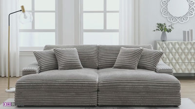 Canapé droit 2 places en gros côtelé doux gris DAHO