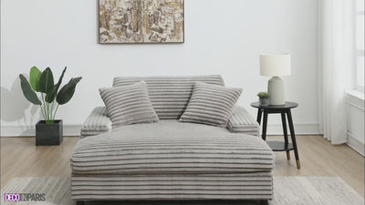 Découvrez le canapé méridienne en gros côtelé doux gris DAHO, parfaite pour les petits espaces.