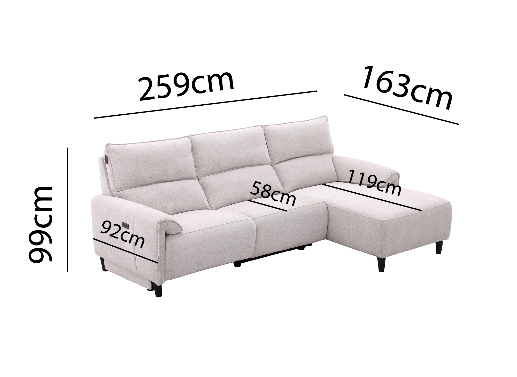 Concedetevi il perfetto connubio tra comfort e modernità con questo divano angolare relax elettrico. Il suo design elegante e il suo colore donano luminosità ed eleganza al tuo soggiorno, integrandosi facilmente in tutti gli stili di interni.