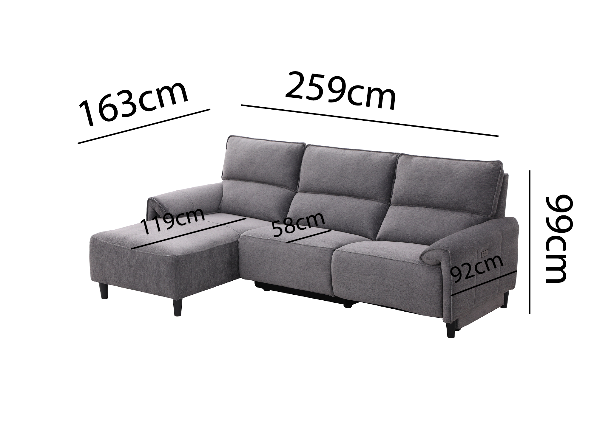 Divano angolare relax elettrico in tessuto grigio scuro LUDMILA - Angolo sinistro