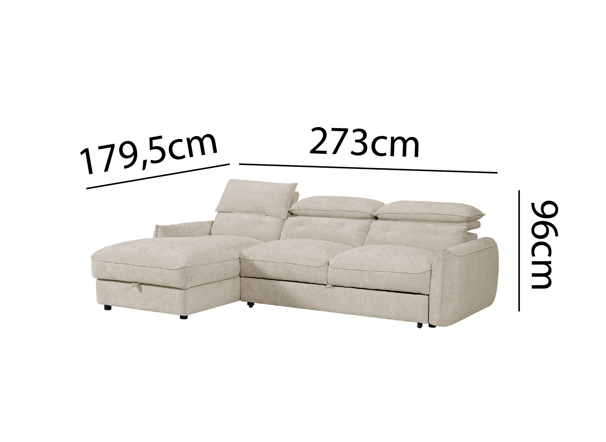 Pratico e funzionale, questo divano si trasforma in un batter d'occhio in un letto grazie al suo meccanismo facile da usare. La sua chaise longue con contenitore integrato è ideale per organizzare piumoni, cuscini, plaid o biancheria per la casa.