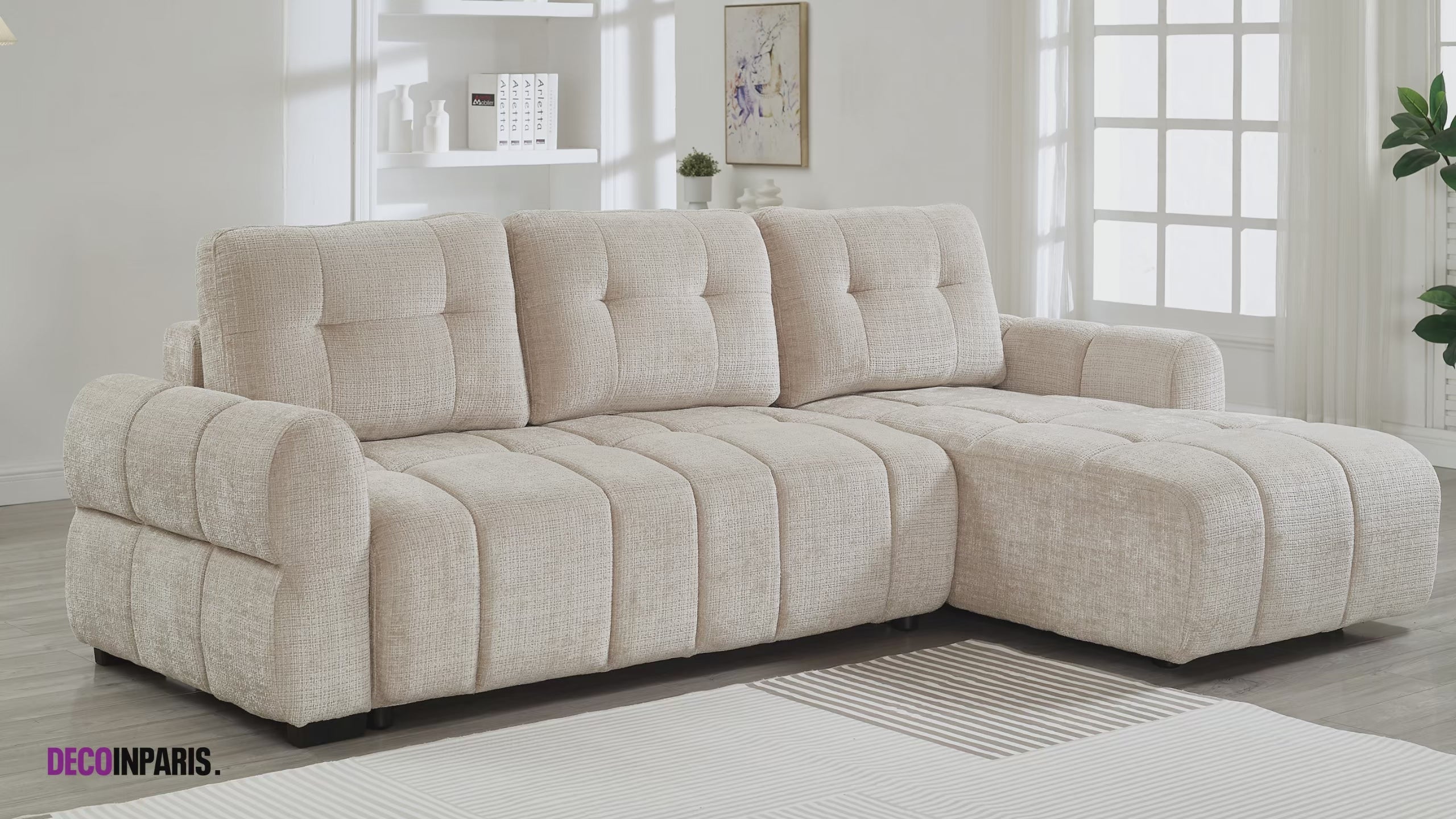 Il divano angolare trasformabile MAHLONE Coniuga così design moderno, comfort e risparmio di spazio, soddisfacendo le esigenze di un soggiorno funzionale e accogliente.