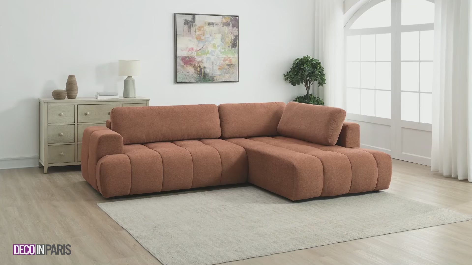 Il divano angolare trasformabile con box contenitore in tessuto HAVEN terracotta porterà un tocco di comfort ed eleganza nel vostro soggiorno. Il suo design elegante e i sedili ampi e morbidi offrono un'esperienza di relax unica valorizzando al tempo stesso i tuoi interni.