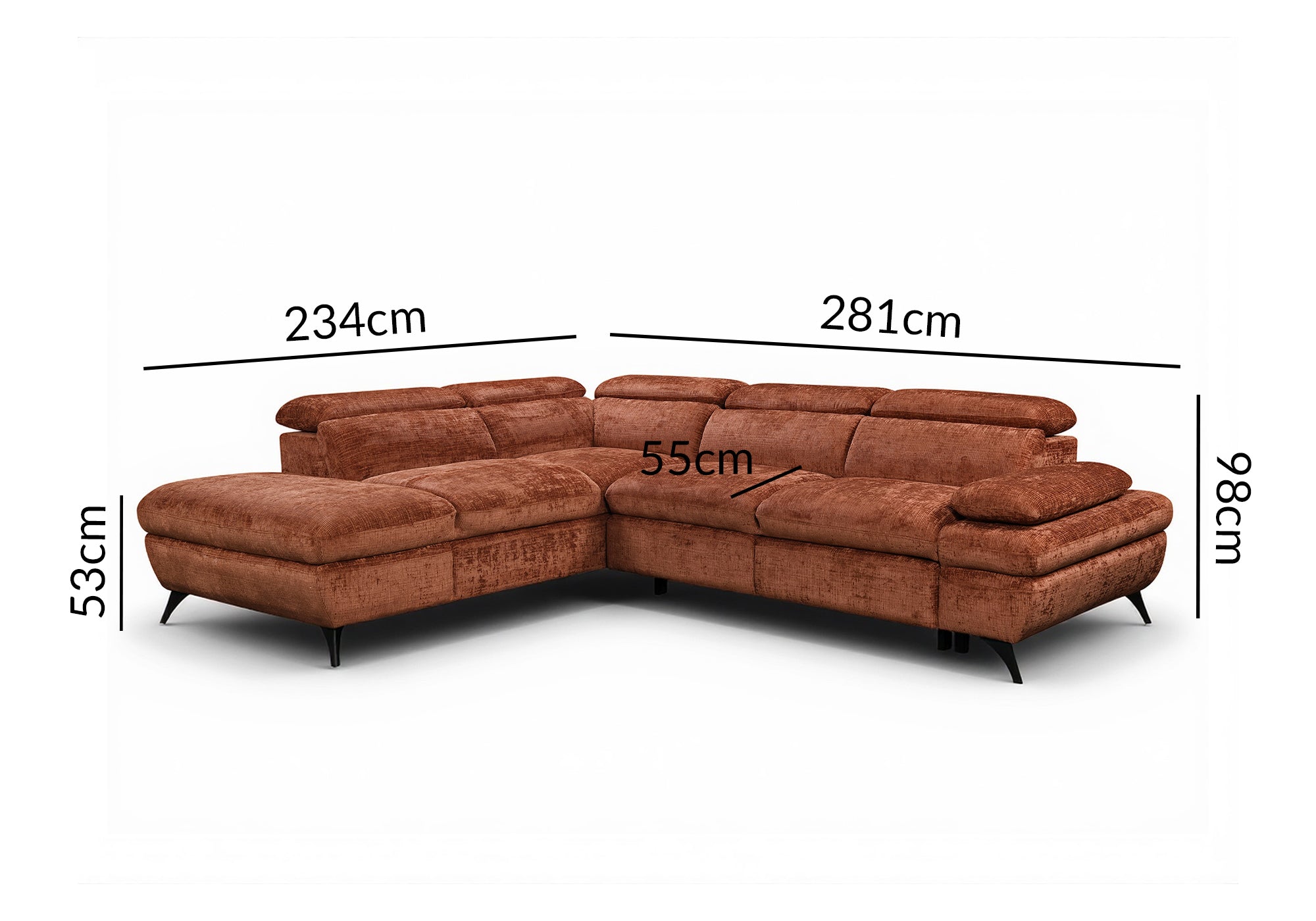 Divano angolare trasformabile con cassapanca in velluto screziato terracotta LUFY - Angolo sinistro