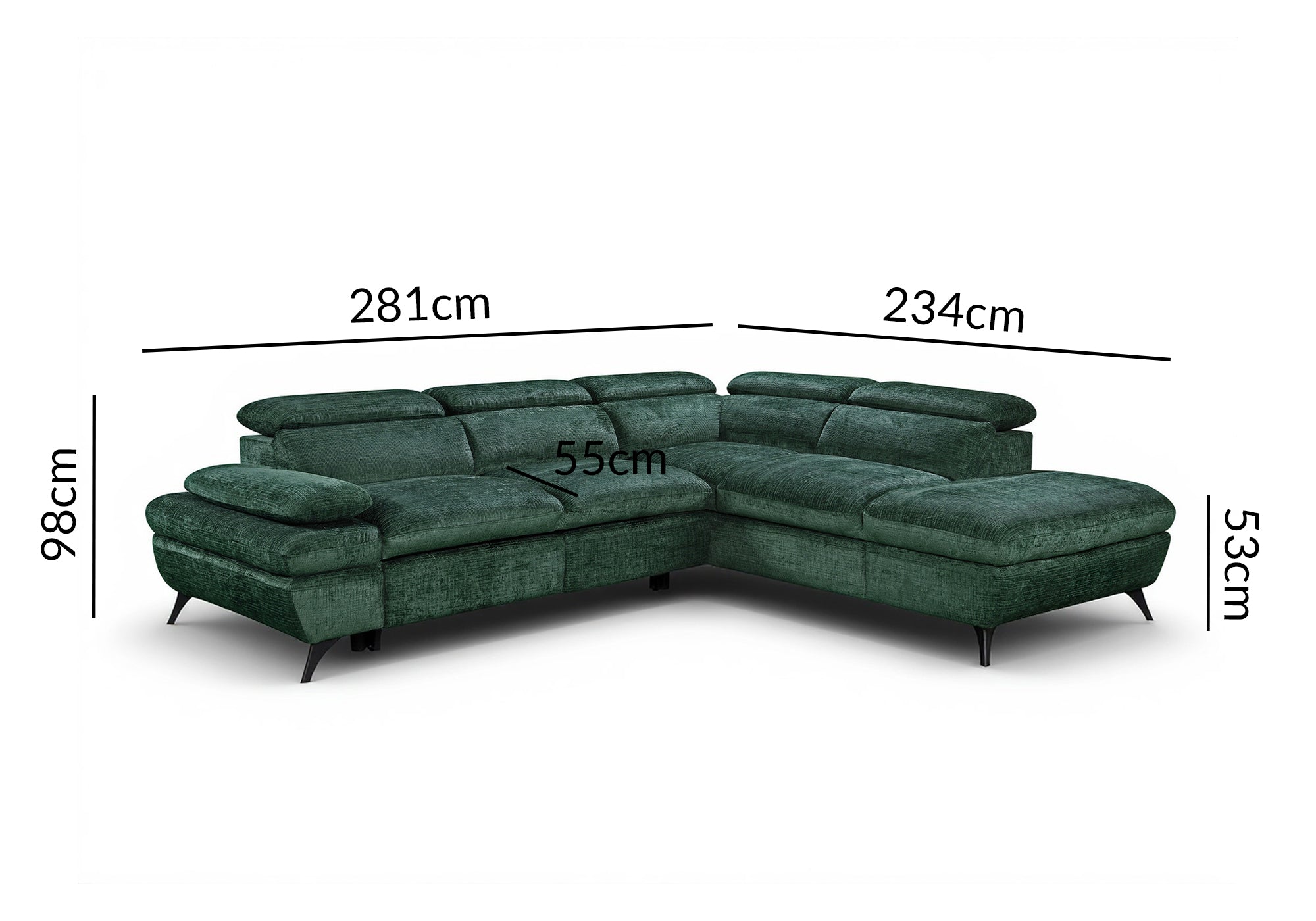 Divano angolare trasformabile con cassapanca in velluto screziato verde LUFY - Angolo retto