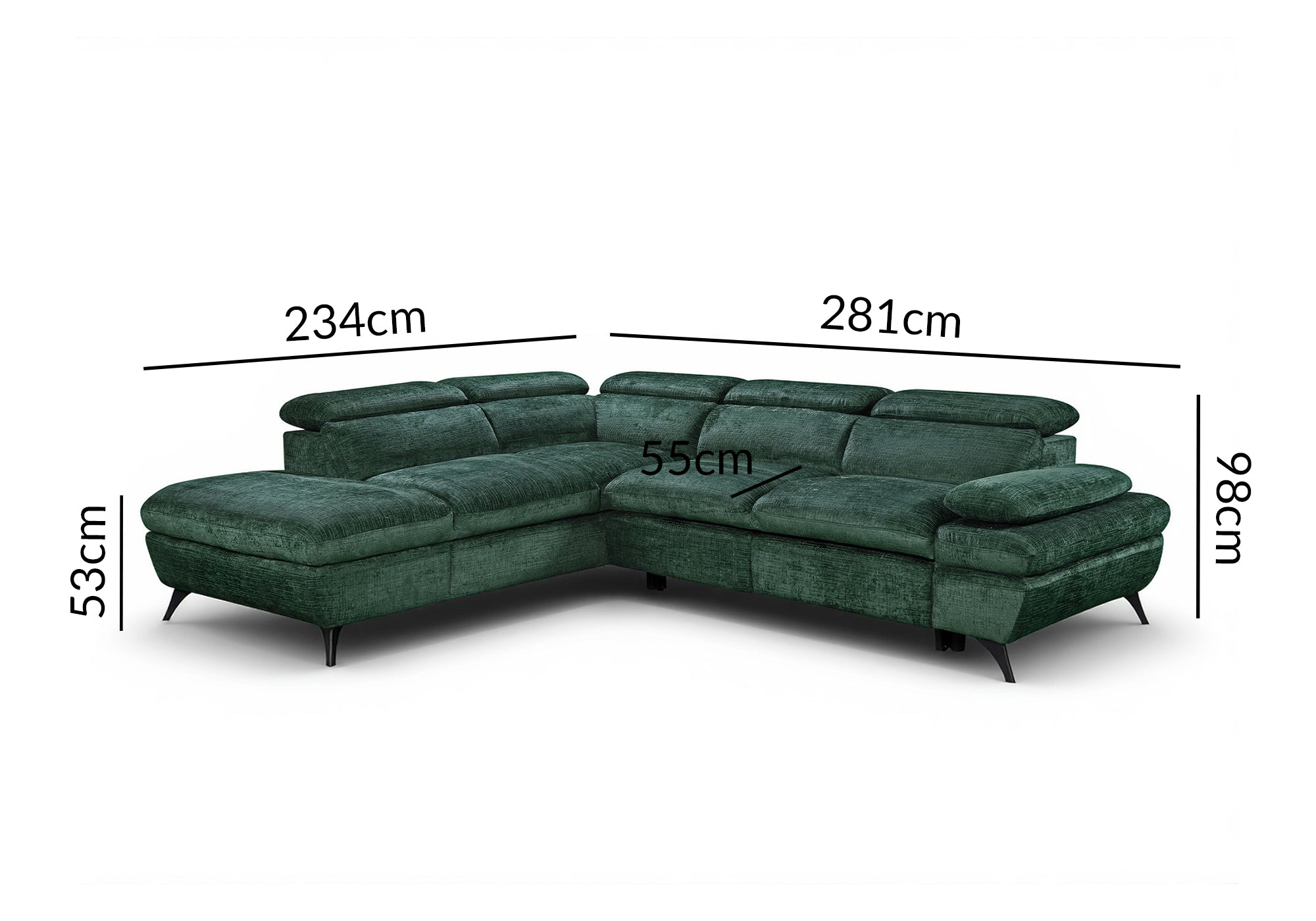 Divano angolare trasformabile con cassapanca in velluto screziato verde LUFY - Angolo sinistro
