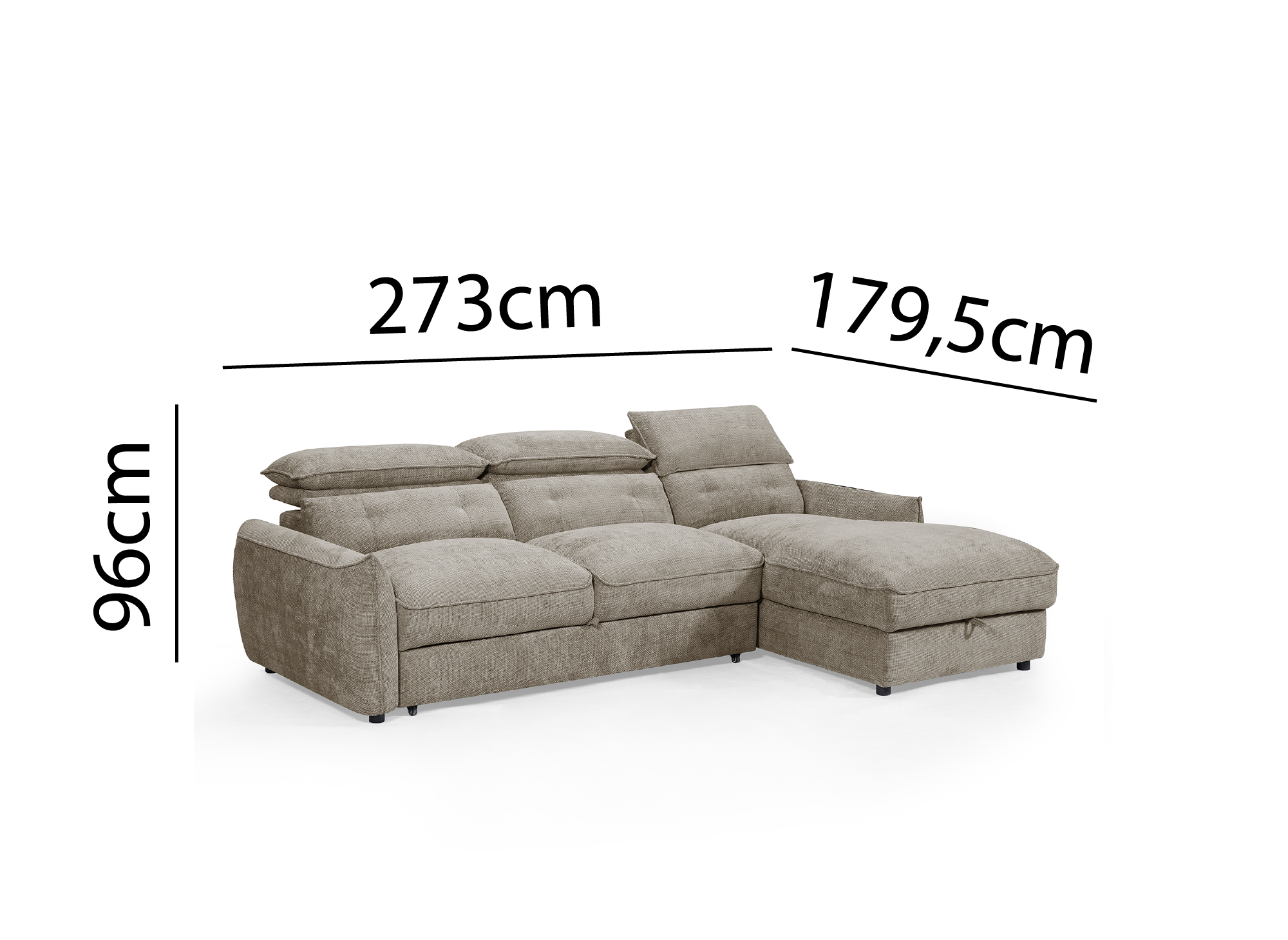 Pratico e funzionale, questo divano si trasforma in un batter d'occhio in un letto grazie al suo meccanismo facile da usare. La sua chaise longue con contenitore integrato è ideale per organizzare piumoni, cuscini, plaid o biancheria per la casa.