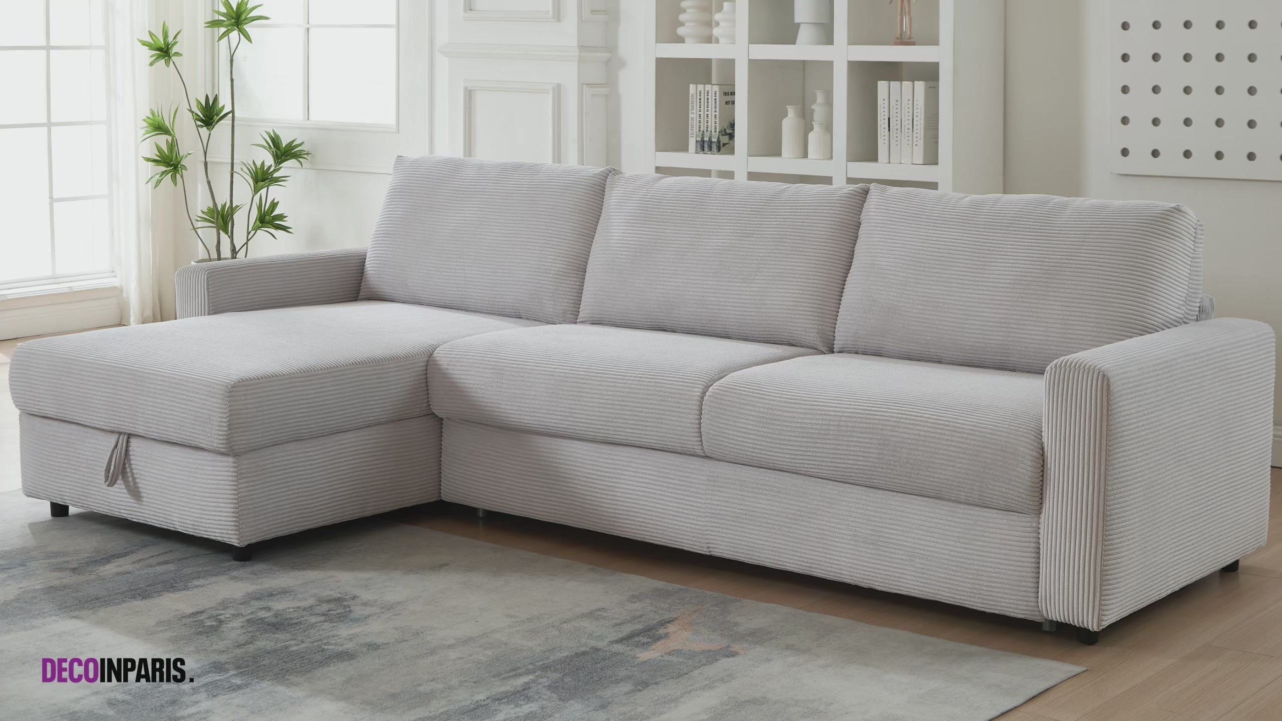 Grazie al suo angolo reversibile, puoi posizionare la chaise longue a sinistra o a destra a seconda della tua stanza, un vero vantaggio per adattarsi a tutti gli spazi.