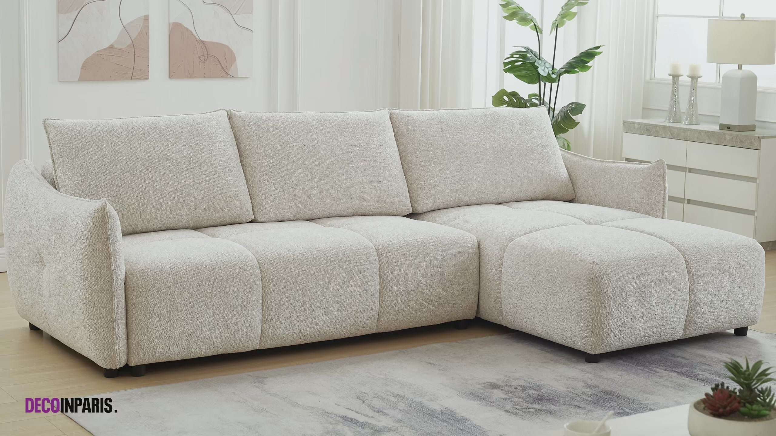 Pensato per il vostro comfort, è dotato di una seduta generosamente imbottita e di ampi e morbidi schienali, perfetti per i momenti di relax quotidiano. La sua chaise longue reversibile ti permette di adattarla a seconda del tuo spazio, a sinistra o a destra, per una disposizione su misura.
