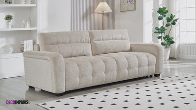 Il divano RALYA in velluto grigio unisce comfort, eleganza e funzionalità in un formato generoso. Progettato per 3 posti, offre spaziose sedute quotidiane e si trasforma facilmente in un letto grazie al suo sistema trasformabile, ideale per intrattenere la famiglia o gli amici.