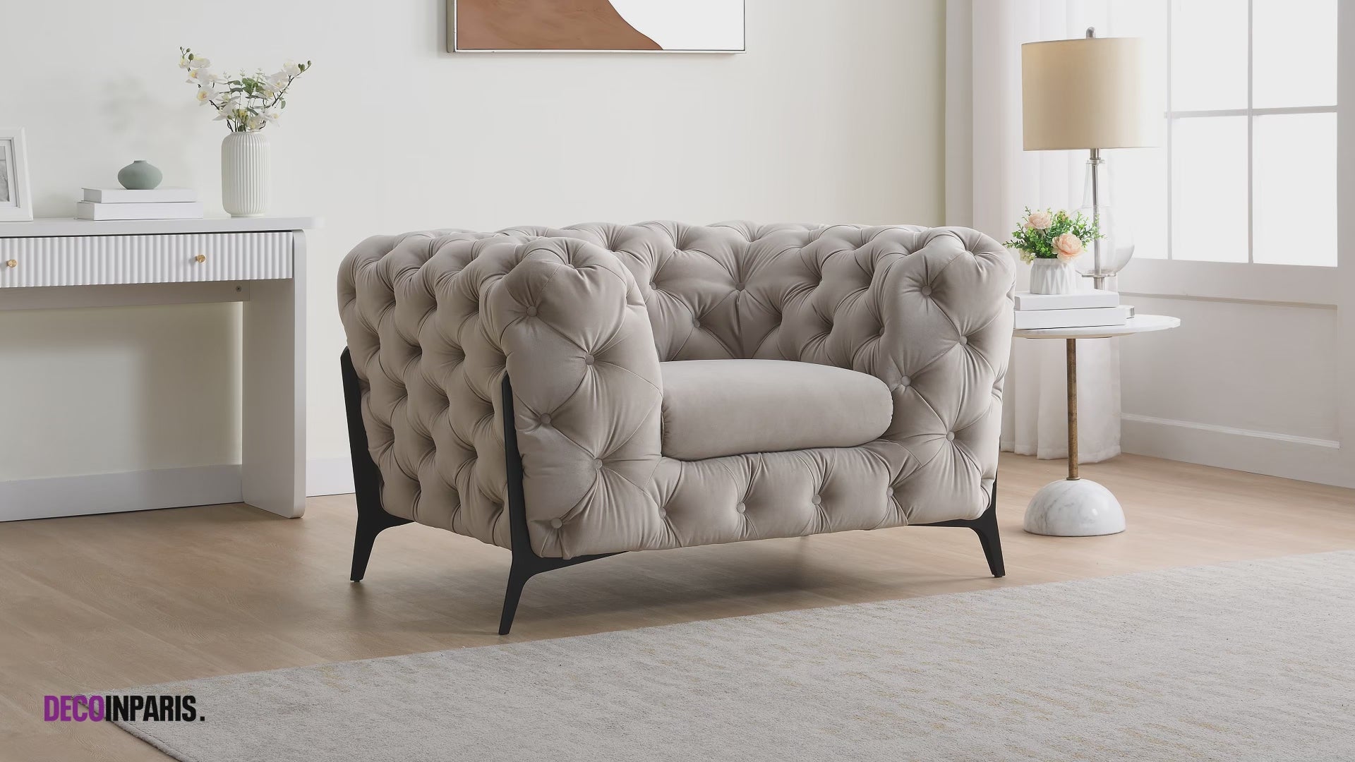 Fauteuil capitonné chesterfield velours beige CARMEN