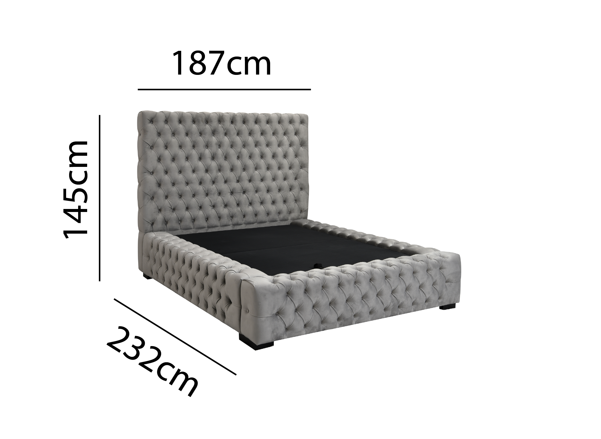 Conçu pour votre plus grand bien-être, notre lit coffre en velours capitonné vous sera d’un grand soutien lors de vos moments de détente. Le velours gris, à la couleur intemporelle et au toucher doux, fera de ce lit l’élément principal de votre décoration intérieure.