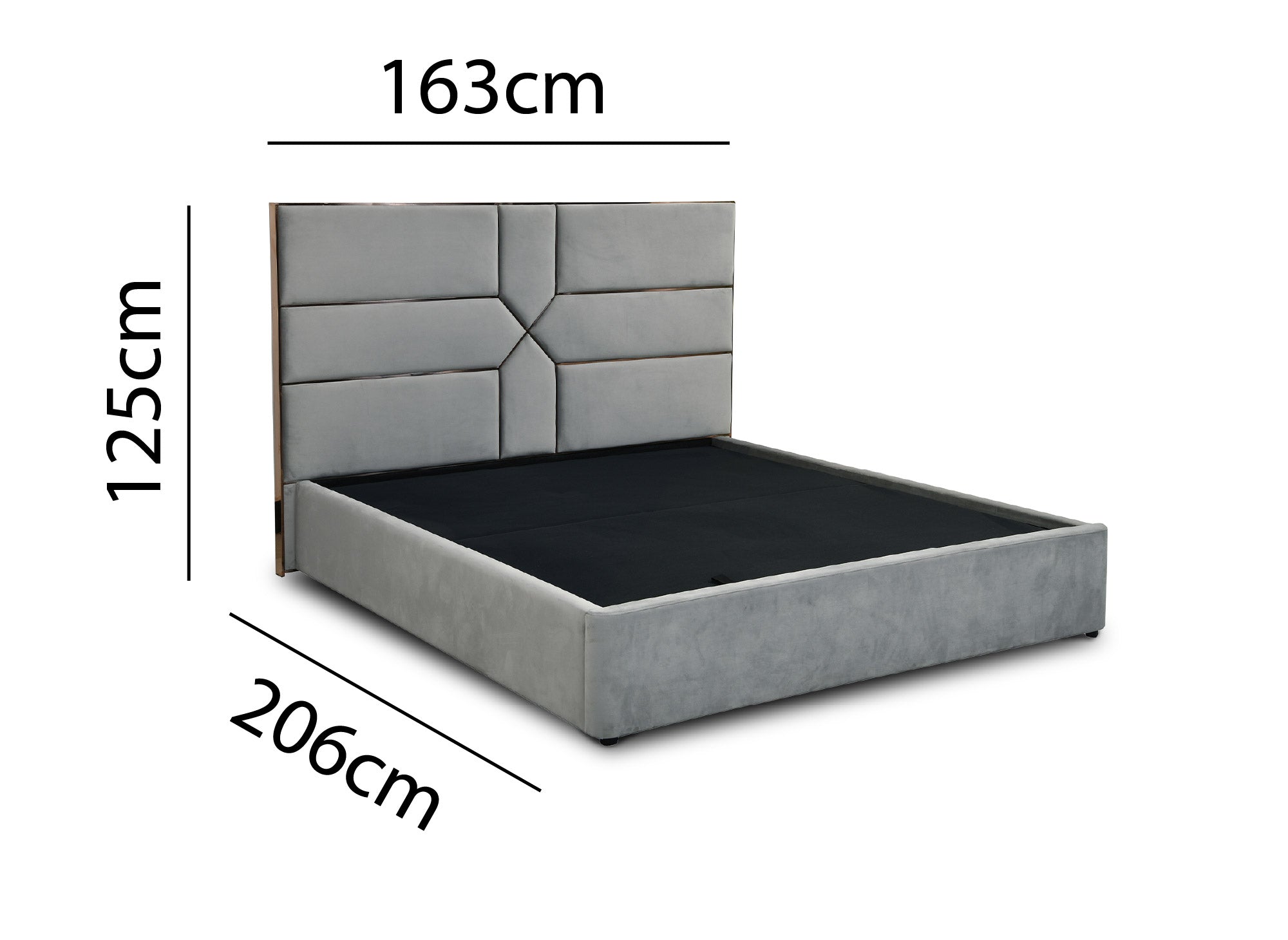 Lit coffre design en velours gris DAVINA 140 x 190 cm