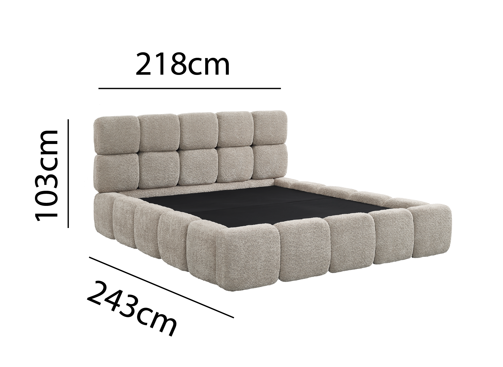 Lit coffre tissu bouclette taupe 180x200 cm BUBBLE