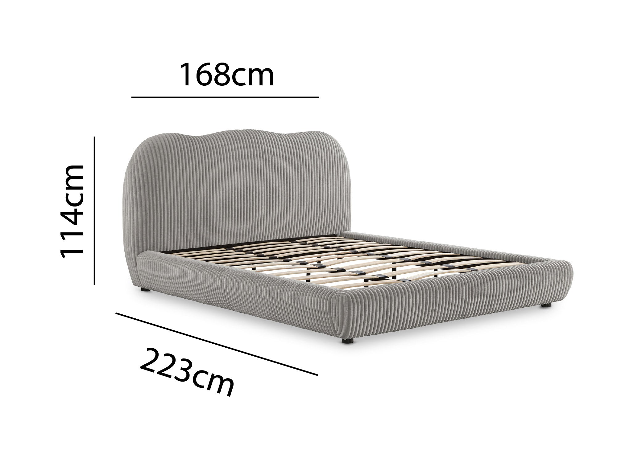 Lit double en velours côtelé épais gris 140x190cm SARA