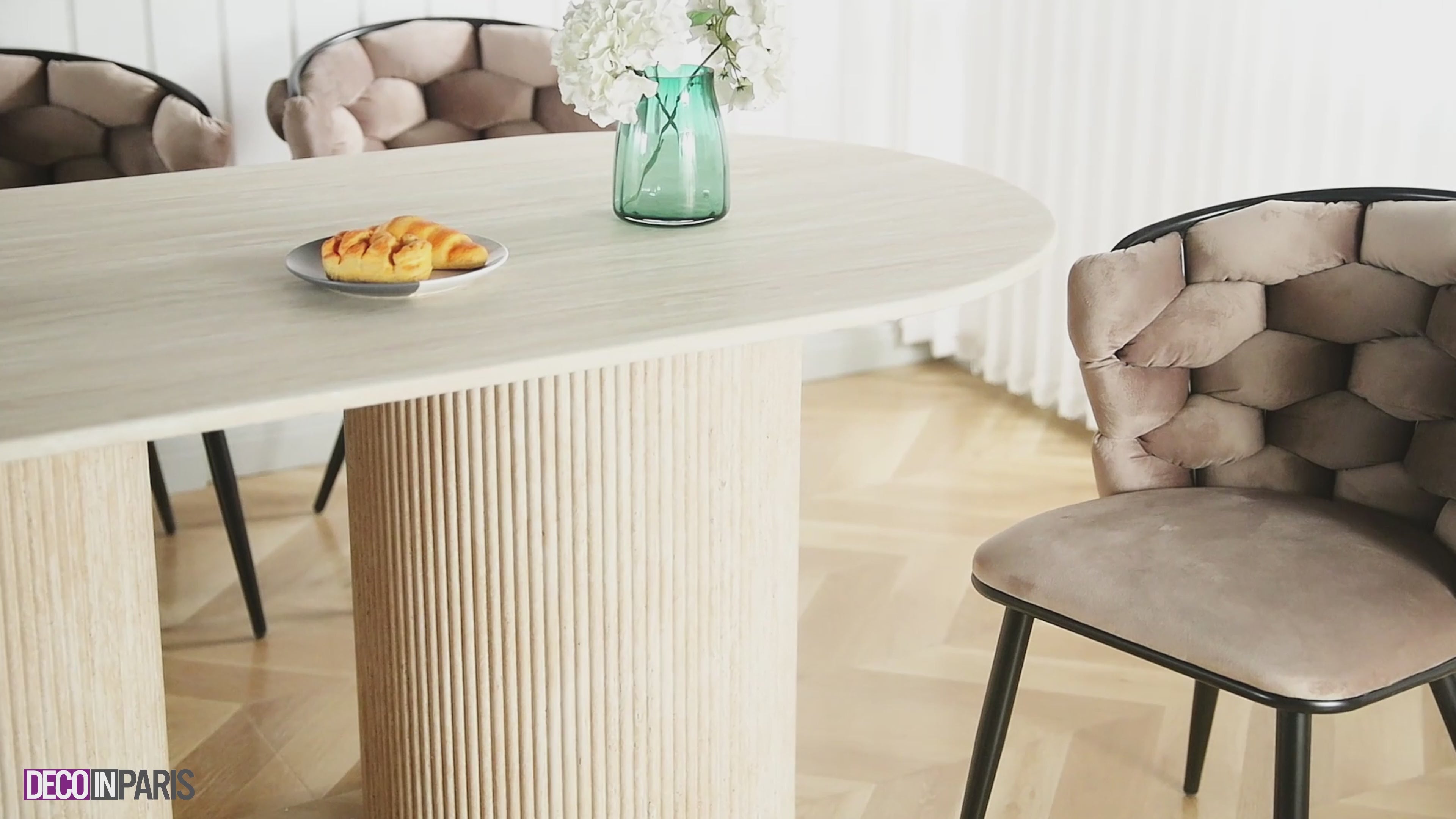 Son revêtement en velours, tressé de façon originale, a été utilisé pour offrir à la chaise un côté apaisant et un toucher doux. Les différents coloris, aux couleurs tendances, apporteront une note de chaleur à votre pièce.