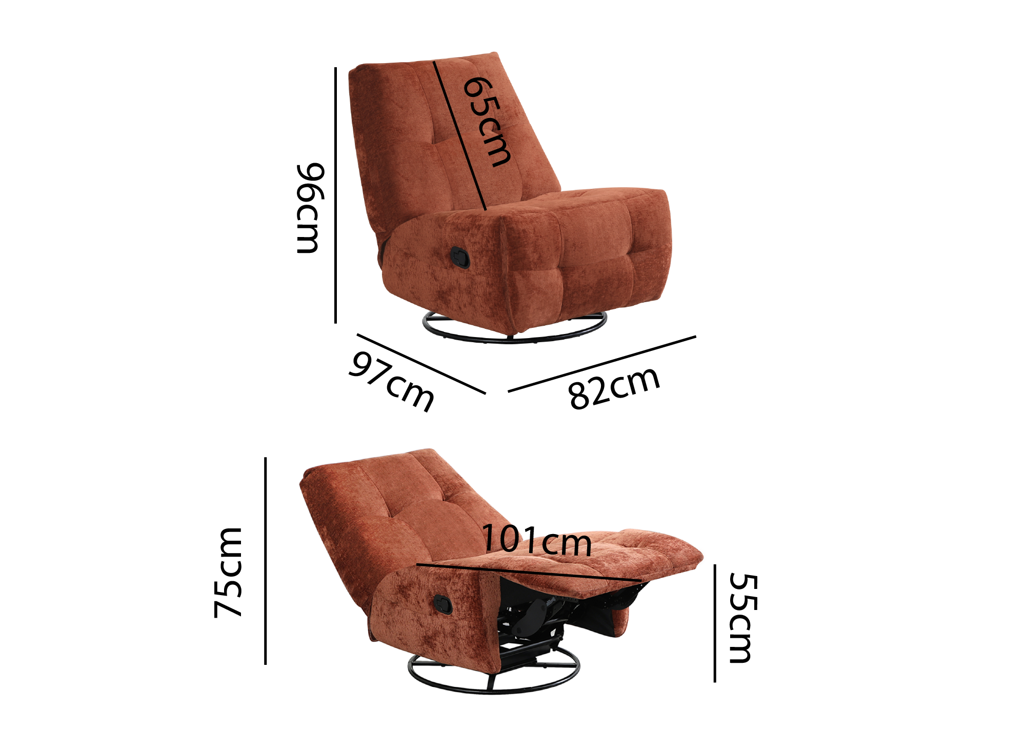 Poltrona relax girevole LISON in velluto terracotta screziato